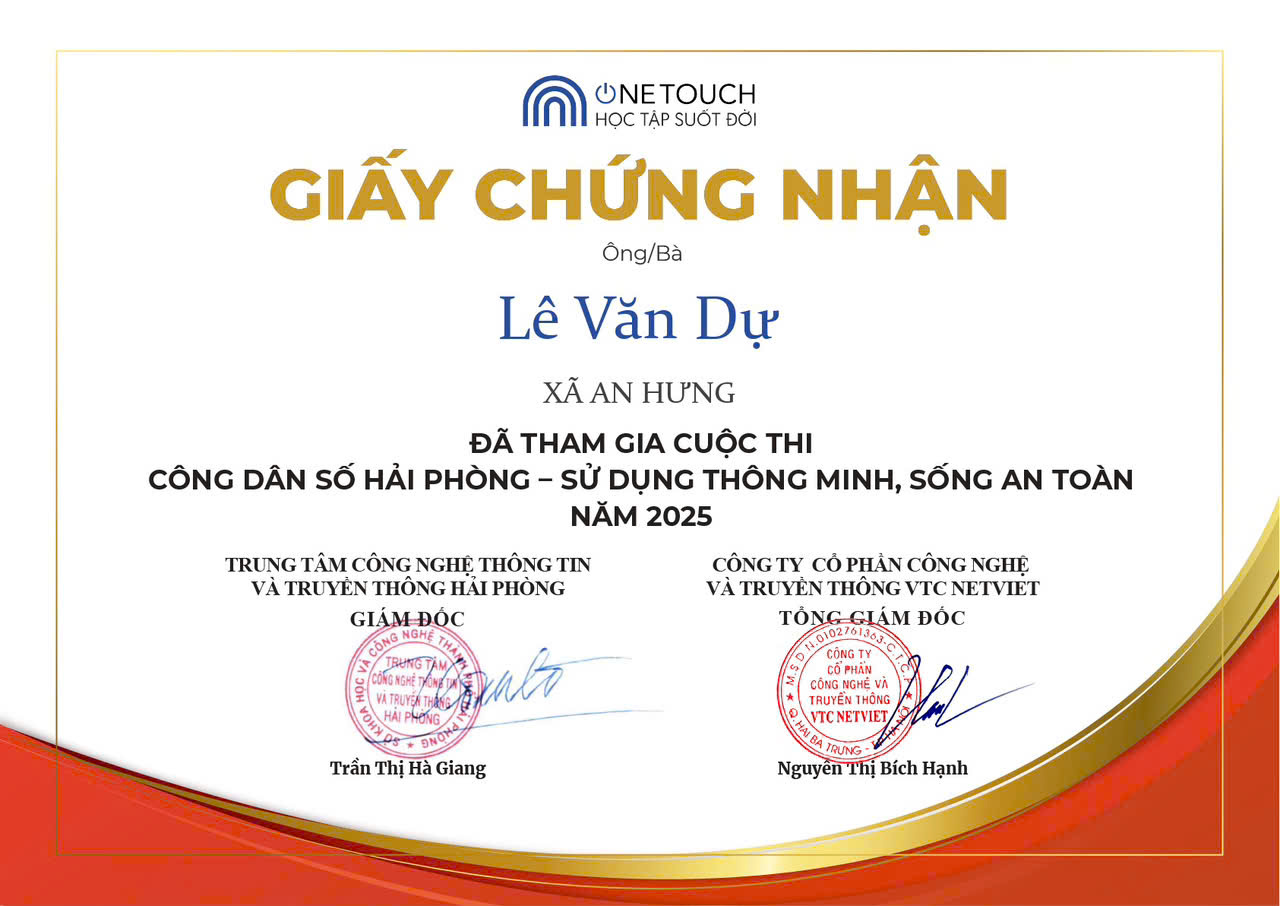 Thực hiện Công văn số 7755/SGDĐT-VP ngày 17/10/2025 của Sở Giáo dục và Đào tạo Hải Phòng về việc triển khai “Ngày hội toàn dân học tập số”, và Công văn số 551/UBND-VHXH ngày 16/10/2025 của UBND xã An Hưng về việc tuyên truyền, phát động Cuộc thi “Công dân số Hải Phòng – Sử dụng thông minh, sống an toàn". Ban Giám hiệu nhà trường đã tuyên truyền, và triển khai tới toàn thể giáo viên , nhân viên của trường.