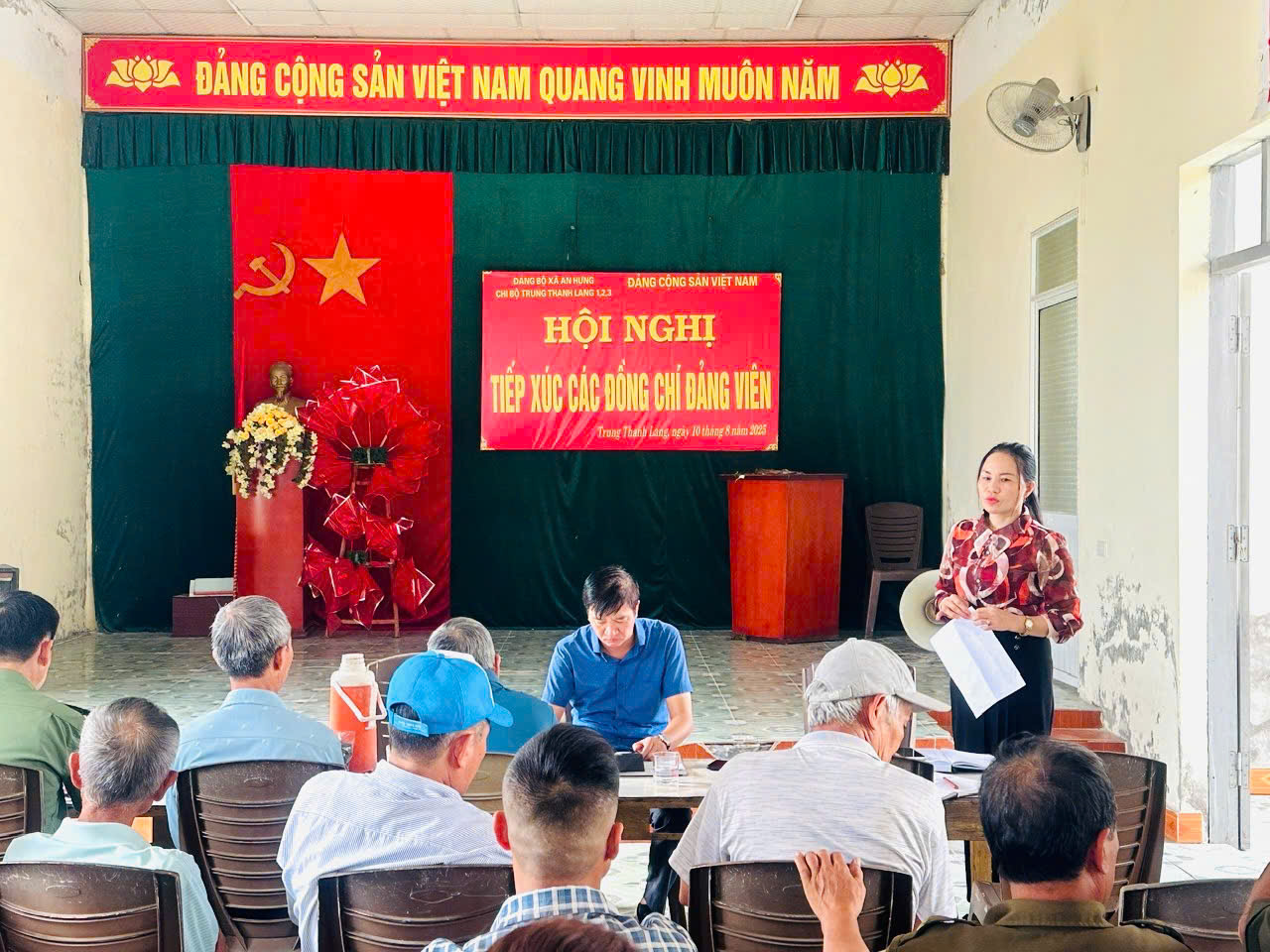 Thực hiện chương trình công tác năm 2025, sáng ngày 17/9/2025, đồng chí Nguyễn Đức Trung – Phó Bí thư Đảng ủy, Chủ tịch UBND xã An Hưng đã có buổi làm việc với thôn Trung Thanh Lang 2 và thôn Trung Thanh Lang 3 tại Nhà văn hóa thôn Trung Thanh Lang.