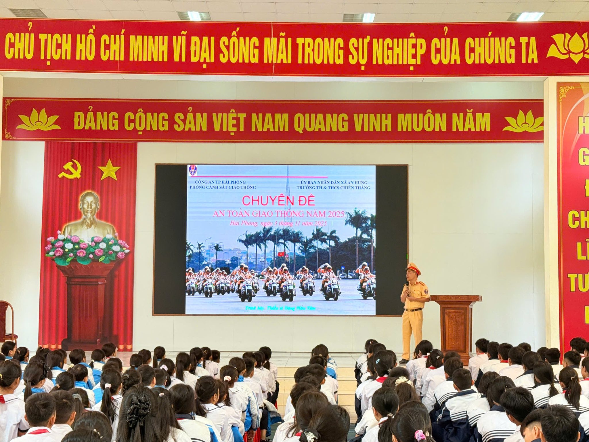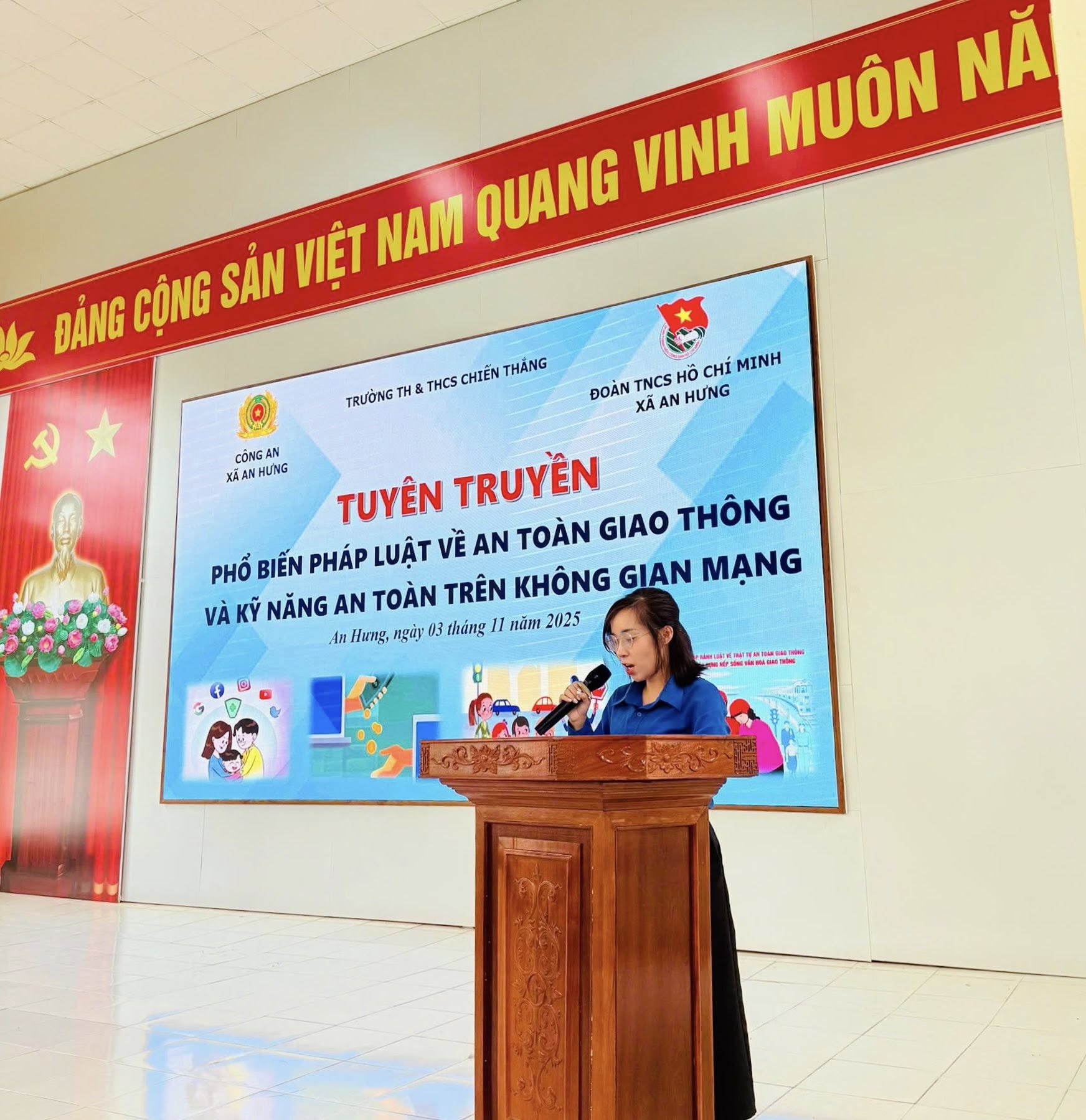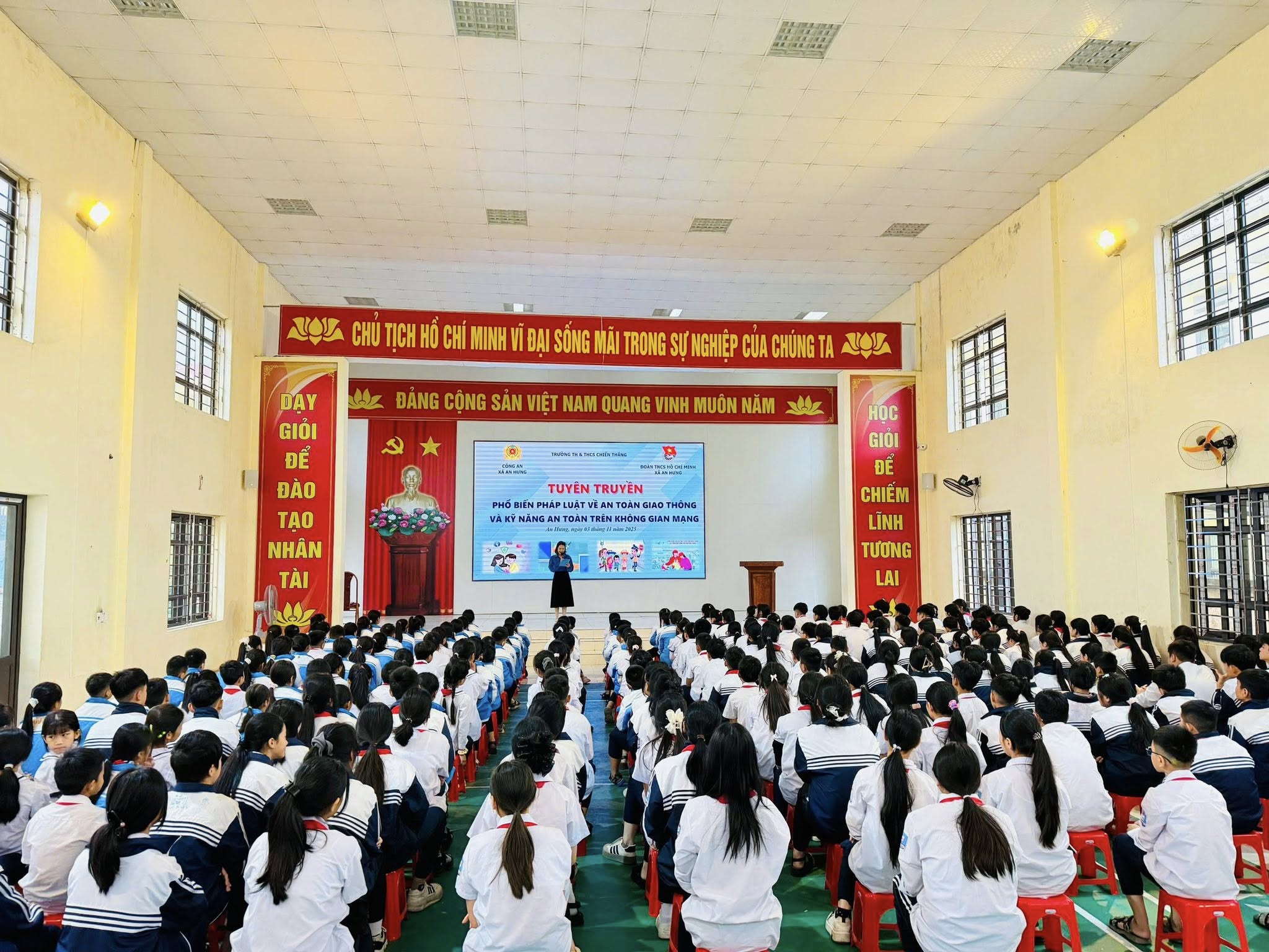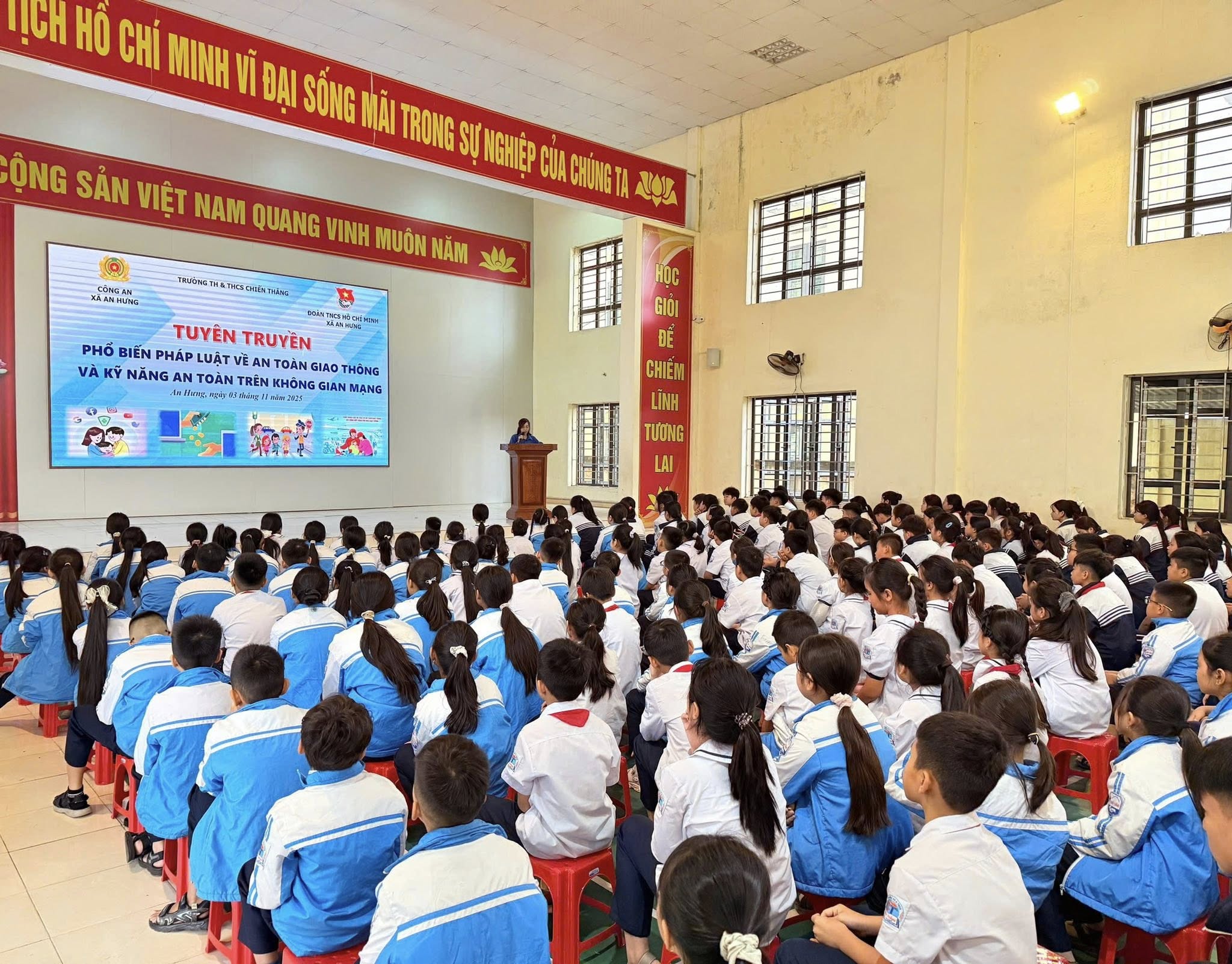 Sáng ngày 03/11/2025, Đoàn xã An Hưng phối hợp với Công an phòng PC08 - Công an Thành phố Hải Phòng, Công an xã An Hưng và trường TH và THCS Chiến Thắng tổ chức buổi tuyên truyền, phổ biến kiến thức pháp luật về an toàn giao thông và kỹ năng an toàn trên không gian mạng.