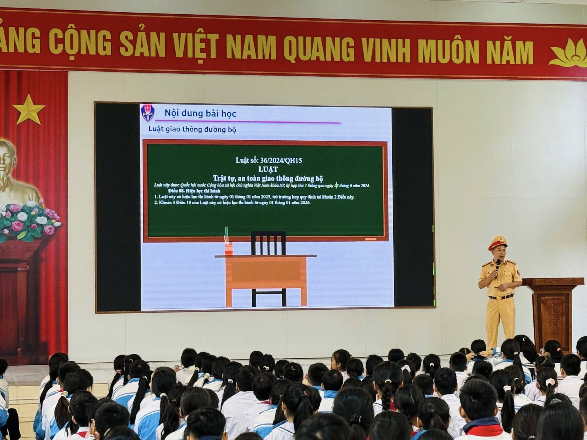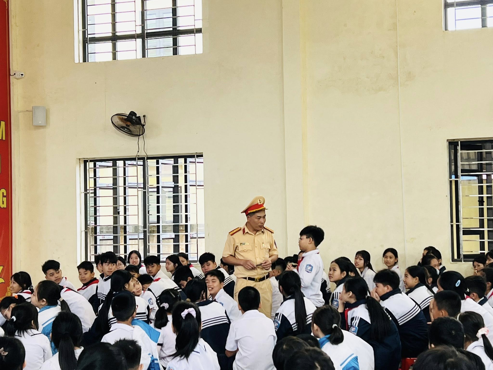 Tại chương trình, đ/c Thiếu tá Đặng Hữu Tâm- Cán bộ phòng PC08 CATP đã truyền đạt tới học sinh những nội dung cơ bản của Luật Giao thông đường bộ, các hành vi vi phạm khi tham gia giao thông như không đội mũ bảo hiểm, chở quá số người quy định, sử dụng điện thoại khi điều khiển xe; giúp các em nhận thức việc chấp hành pháp luật giao thông không chỉ là nghĩa vụ công dân, mà còn là hành động thể hiện văn hoá, ý thức và trách nhiệm đối với bản thân, gia đình và cộng đồng.