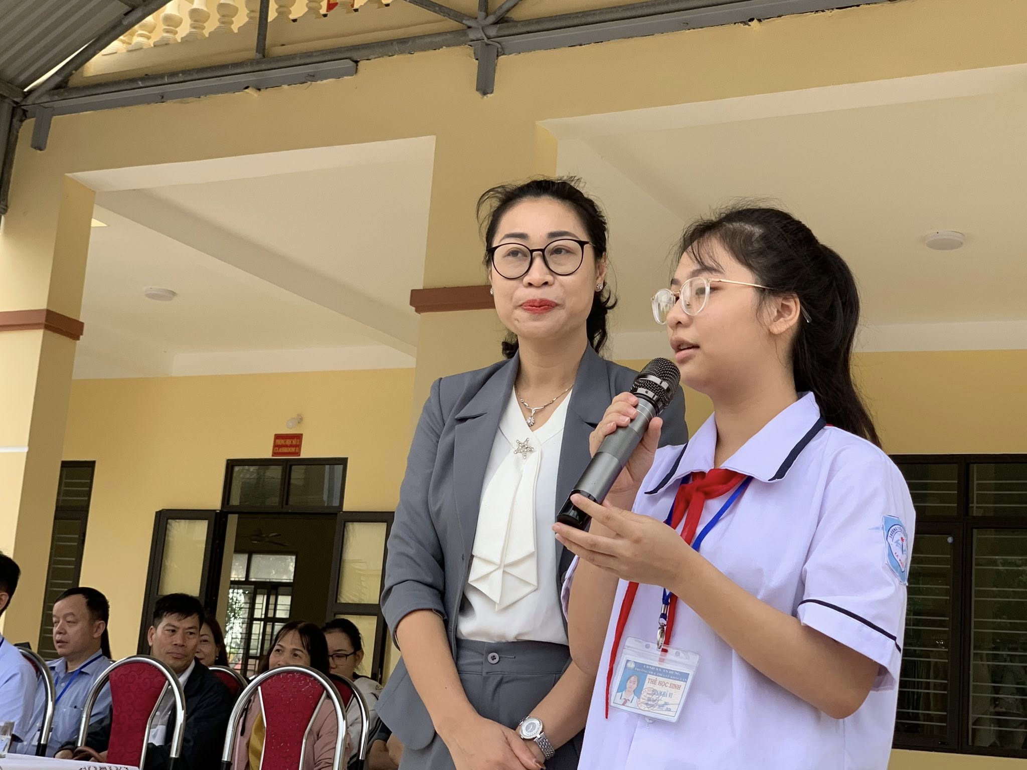 Dự và động viên chương trình có thầy Phạm Văn Toàn – Bí thư Chi bộ, Hiệu trưởng nhà trường, thầy Nguyễn Phương Nam – Phó Bí thư Chi bộ, Phó Hiệu trưởng, cùng toàn thể các thầy cô giáo và các em đội viên bậc THCS.