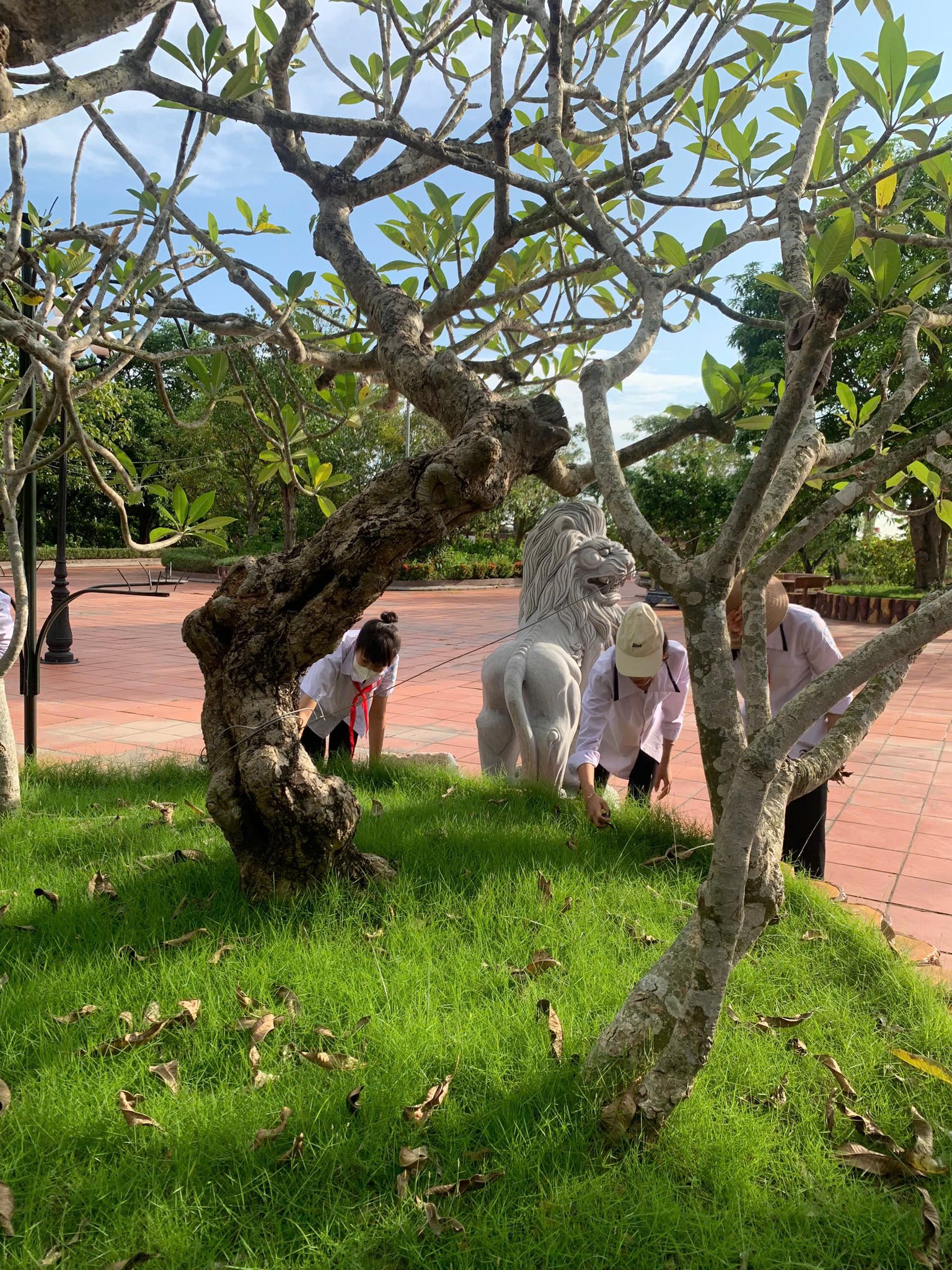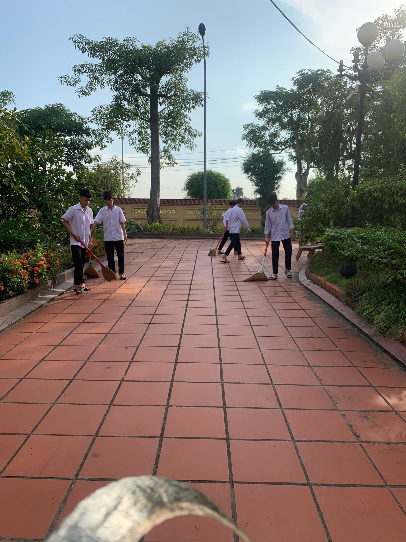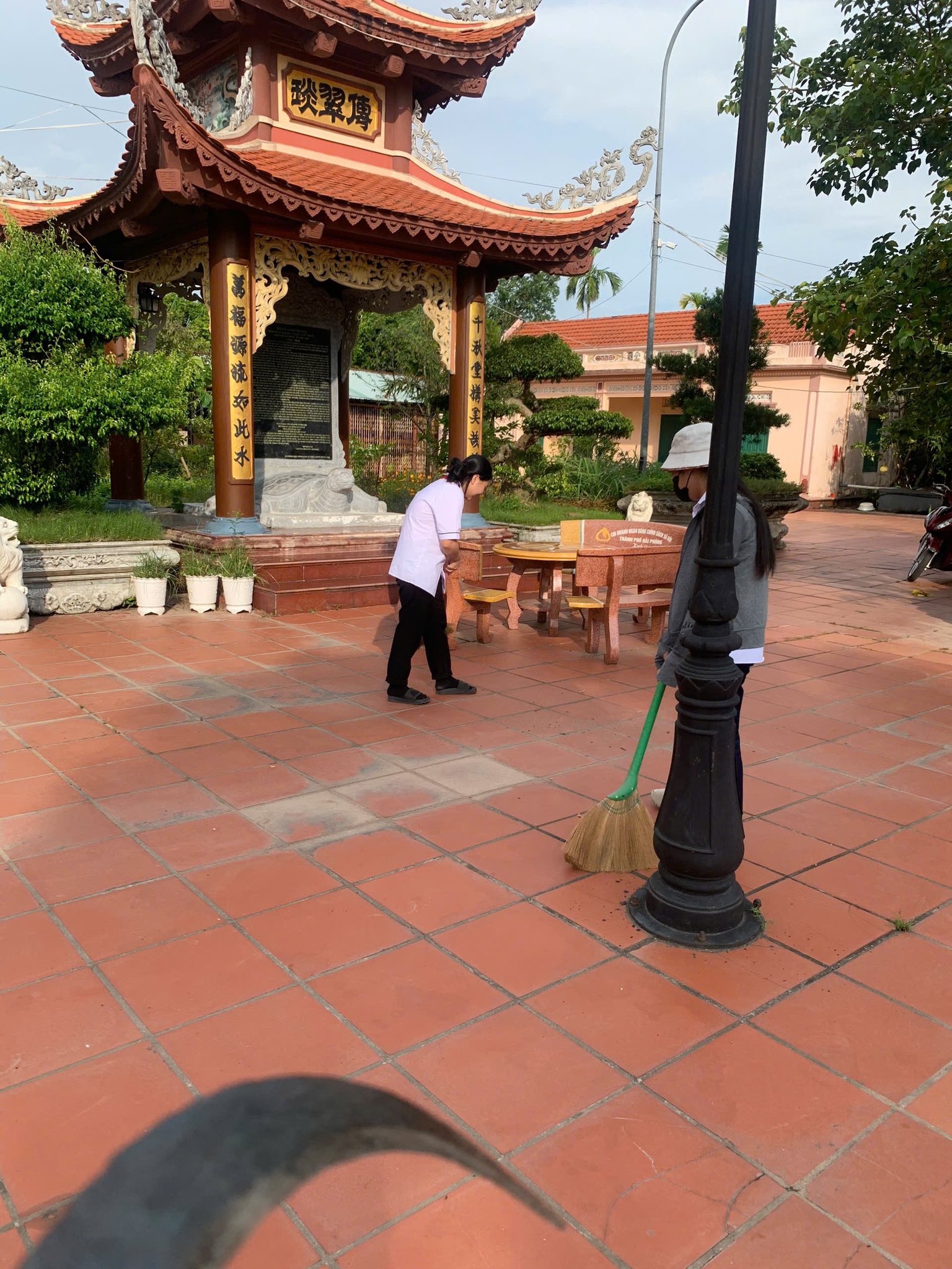 Dưới sự hướng dẫn của cô giáo chủ nhiệm cùng các thầy cô trong nhà trường, các em học sinh đã tích cực tham gia các hoạt động như quét dọn, nhổ cỏ, chăm sóc cây xanh, vệ sinh sân đền, ngõ vào và thu gom rác thải trong khuôn viên di tích.