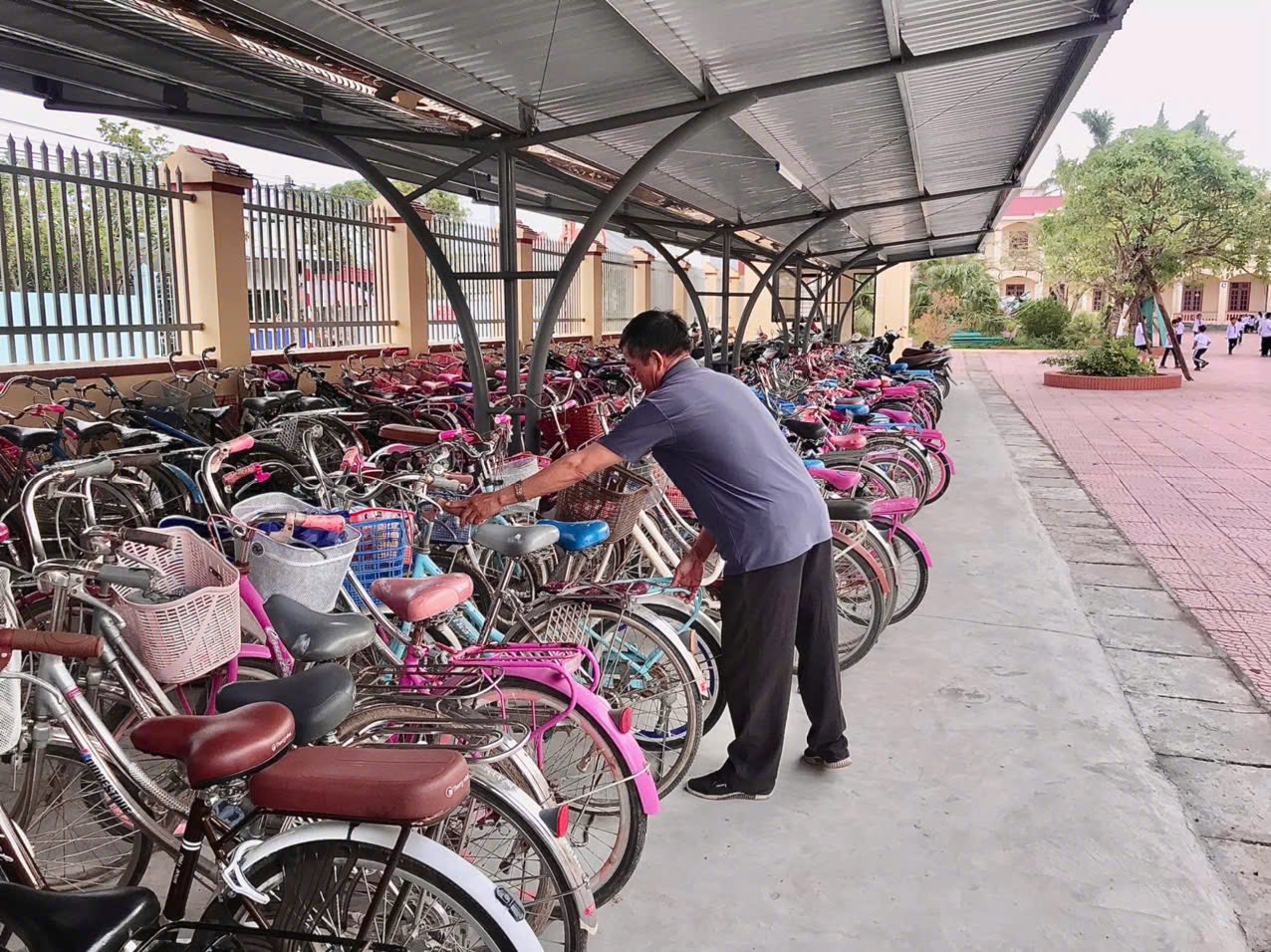 Từ sáng sớm tinh mơ, khi sân trường còn đọng hơi sương, bác đã có mặt để mở cổng, đón học sinh đến trường, ân cần nhắc các em chào hỏi lễ phép, xếp xe ngay ngắn và giữ gìn trật tự trong khuôn viên trường. Với đôi bàn tay cần mẫn, bác nhẹ nhàng xếp từng chiếc xe đạp thành hàng thẳng tắp, khiến sân trường luôn gọn gàng và an toàn.