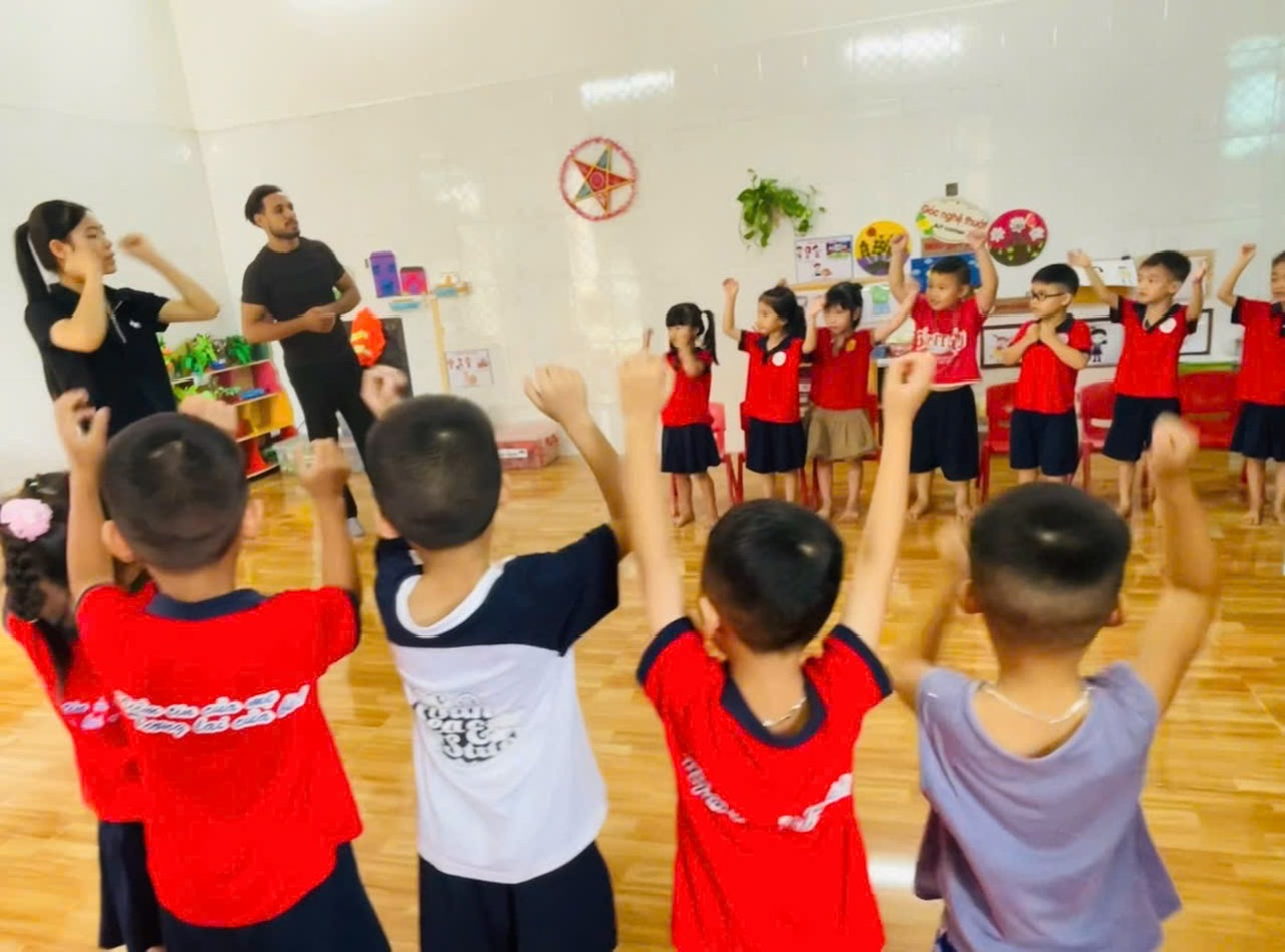 Trong những tiết học tràn đầy tiếng cười, các bé được cùng thầy cô nước ngoài hát những bài hát vui nhộn, tham gia trò chơi tương tác, luyện phát âm và thực hành giao tiếp tiếng Anh qua các chủ đề quen thuộc trong cuộc sống hằng ngày. Không khí lớp học luôn rộn ràng, sôi nổi và ngập tràn niềm vui.