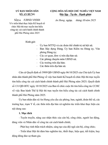 🚩🚩Sáng ngày 13/10/2025, tại phòng họp tầng hai trụ sở UBND xã, Ủy ban nhân dân xã An Hưng tổ chức buổi kiểm tra việc thực hiện các quy định về quản lý và sử dụng con dấu.