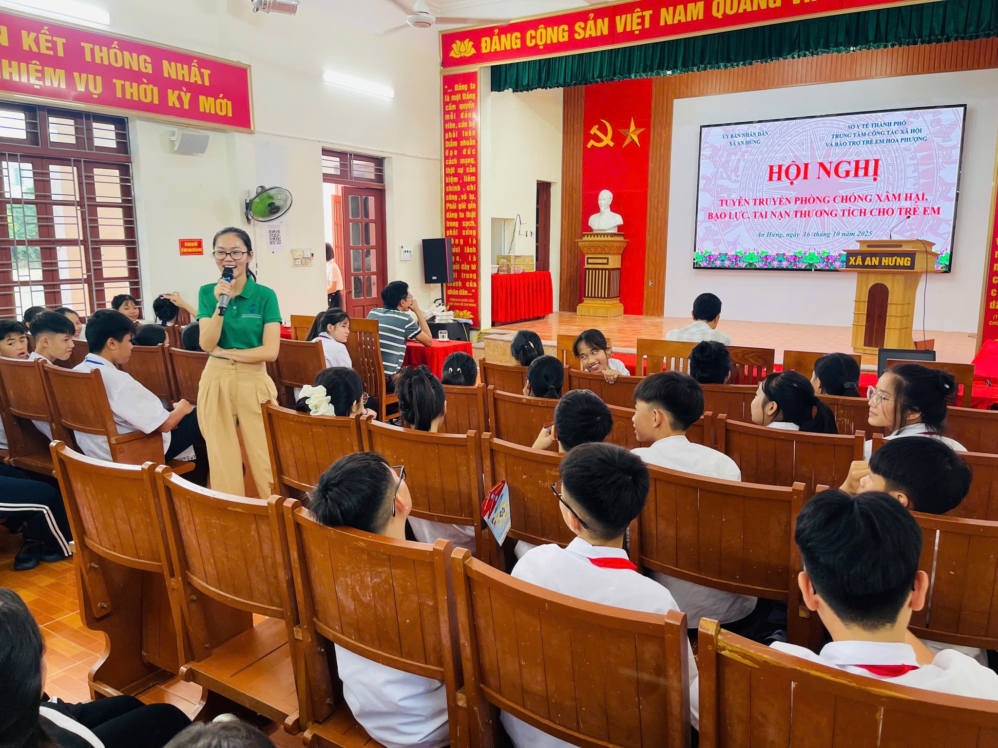⛳Chiều ngày 16 tháng 10 năm 2025, Ủy ban nhân dân xã An Hưng phối hợp cùng Trung tâm Công tác xã hội và Bảo trợ trẻ em Hoa Phượng tổ chức Hội nghị tuyên truyền phòng, chống xâm hại, bạo lực và tai nạn thương tích cho trẻ em.