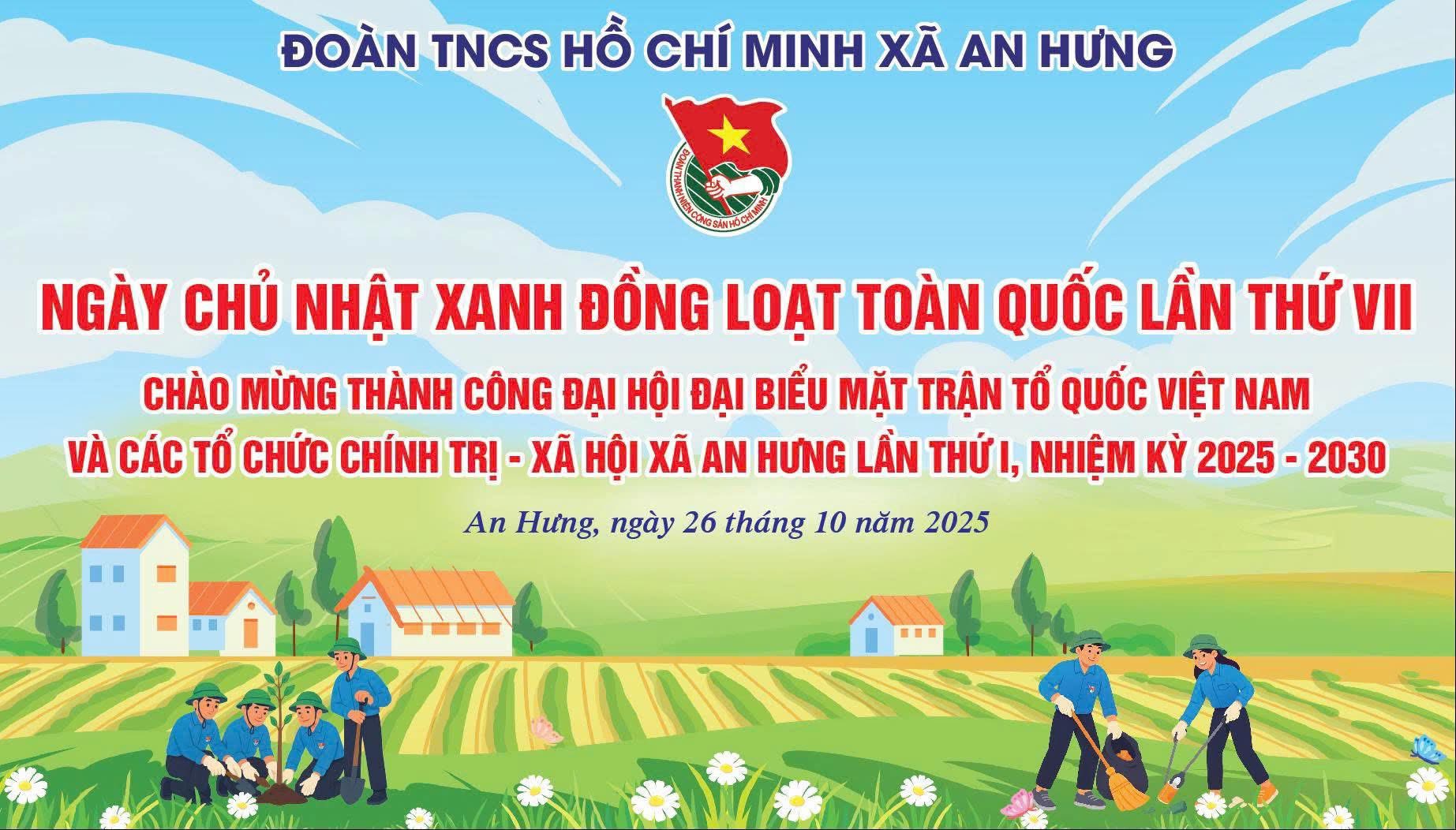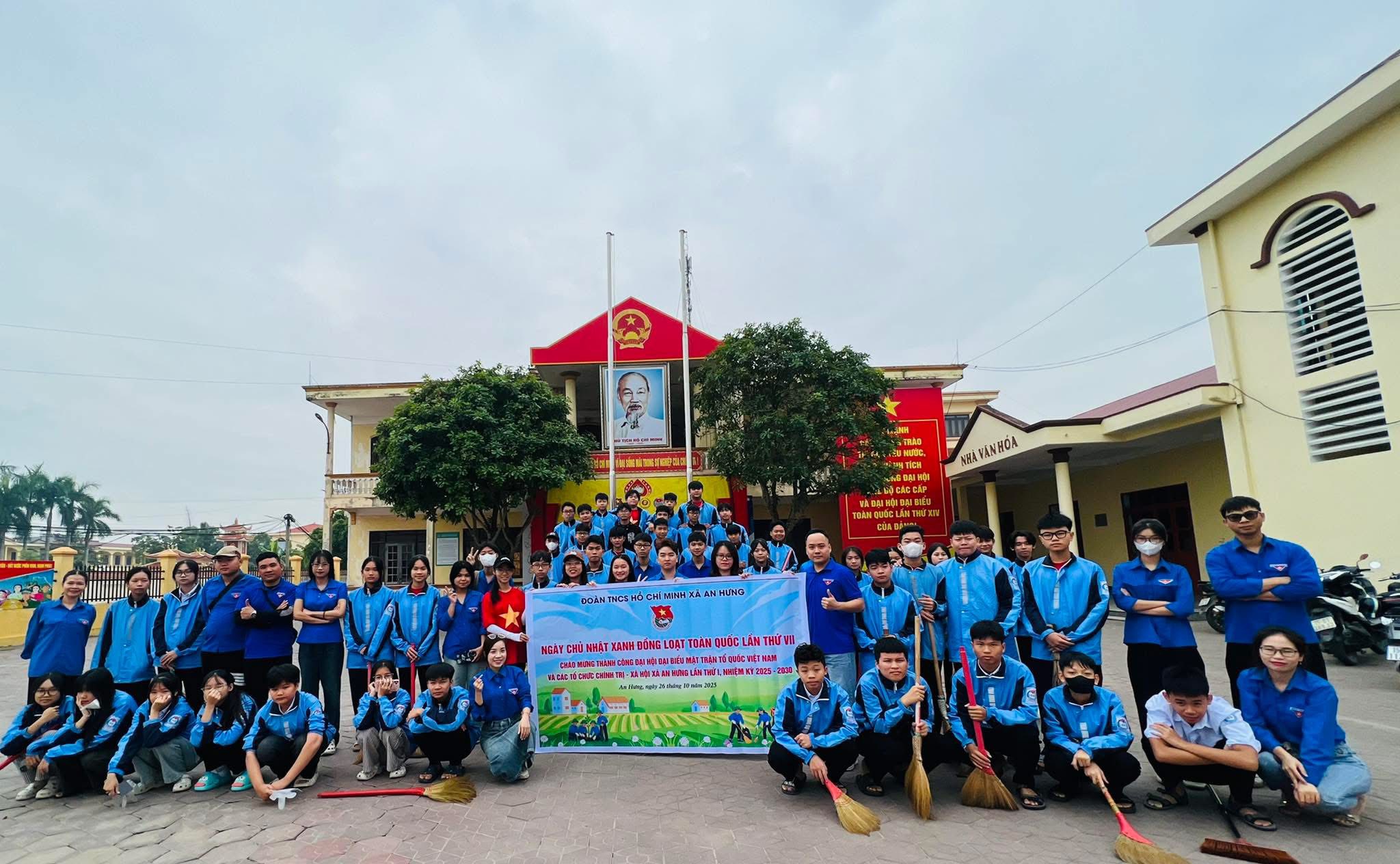 Hưởng ứng chiến dịch ra quân đồng loạt “Ngày Chủ nhật xanh” do Thành đoàn Hải Phòng phát động; thực hiện Kế hoạch hoạt động năm 2025; thiết thực các hoạt động chào mừng thành công Đại hội đại biểu Mặt trận tổ quốc Việt Nam và các tổ chức chính trị xã hội xã An Hưng lần thứ I, nhiệm kỳ 2025-2030; sáng ngày 26/10/2025, Đoàn Thanh niên xã An Hưng đã tổ chức ra quân với nhiều hoạt động ý nghĩa nhằm bảo vệ môi trường.