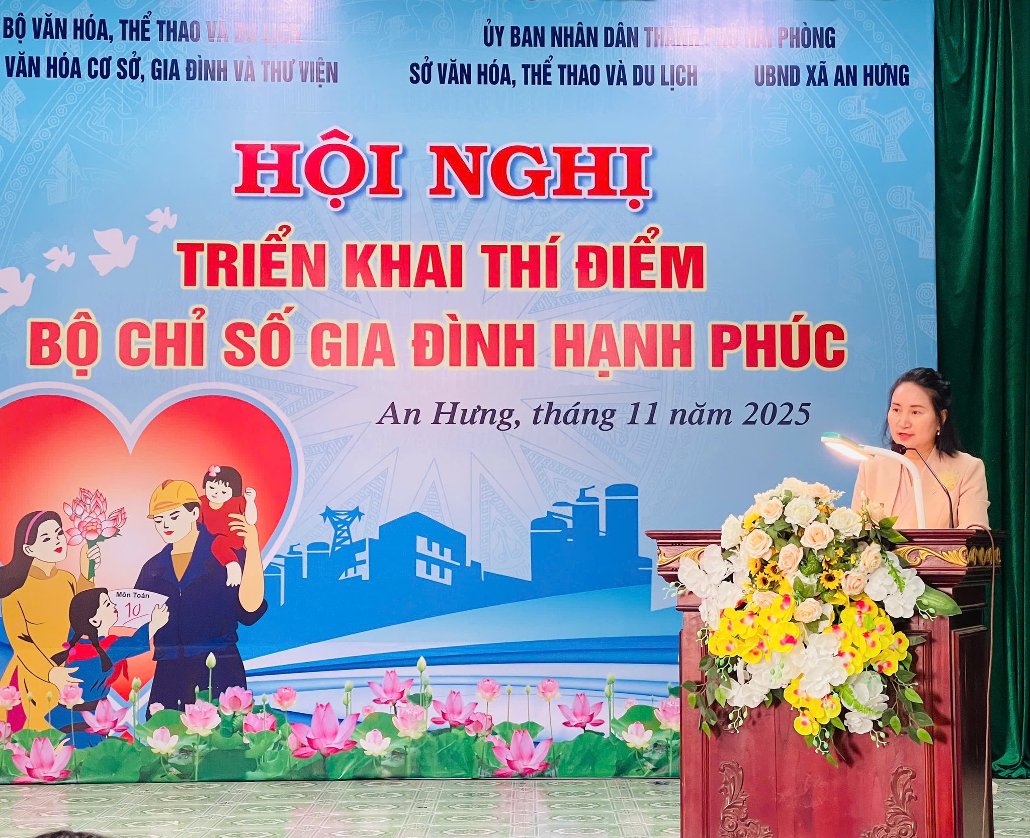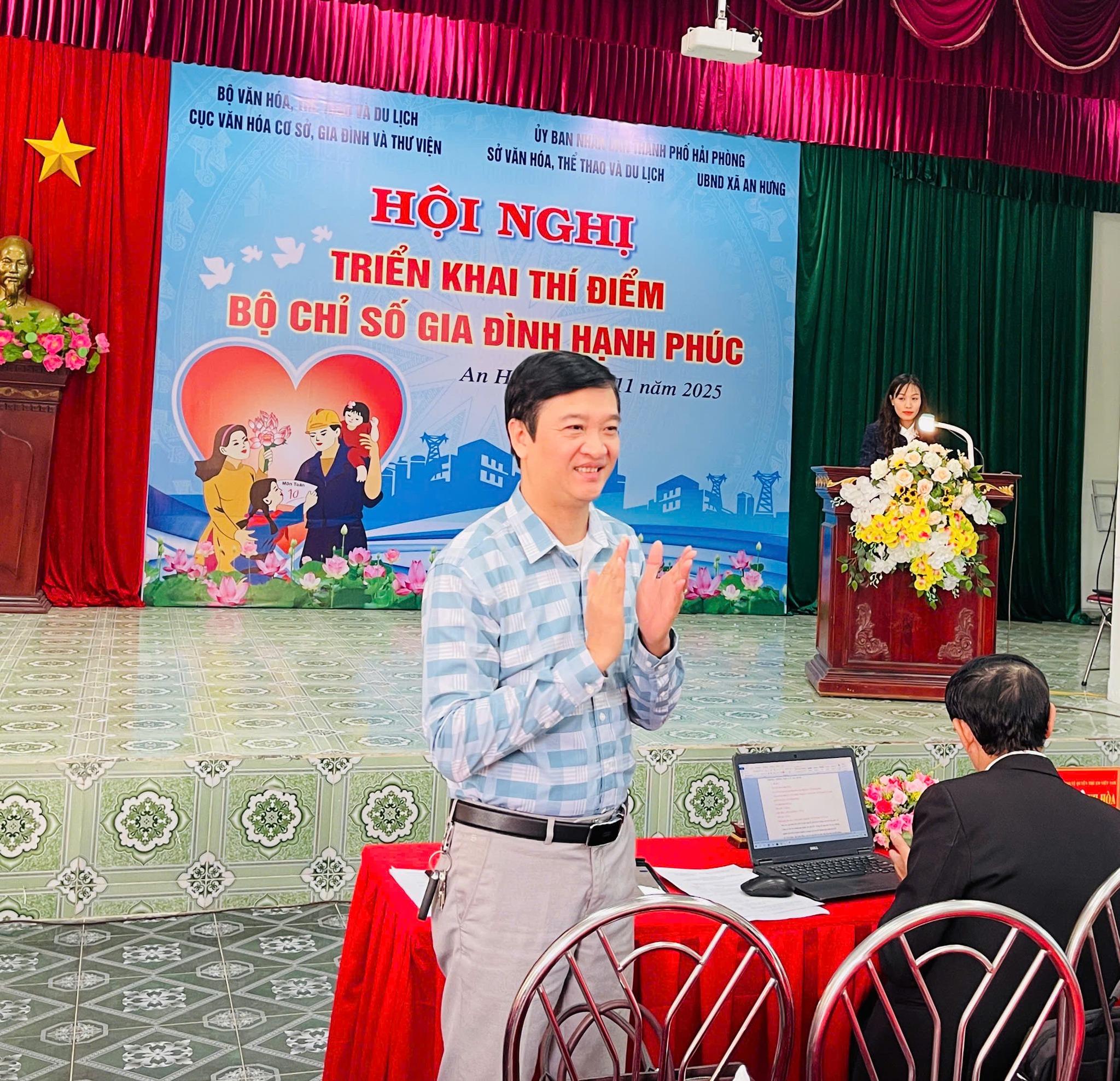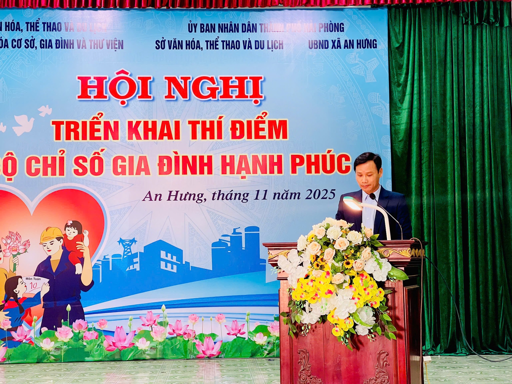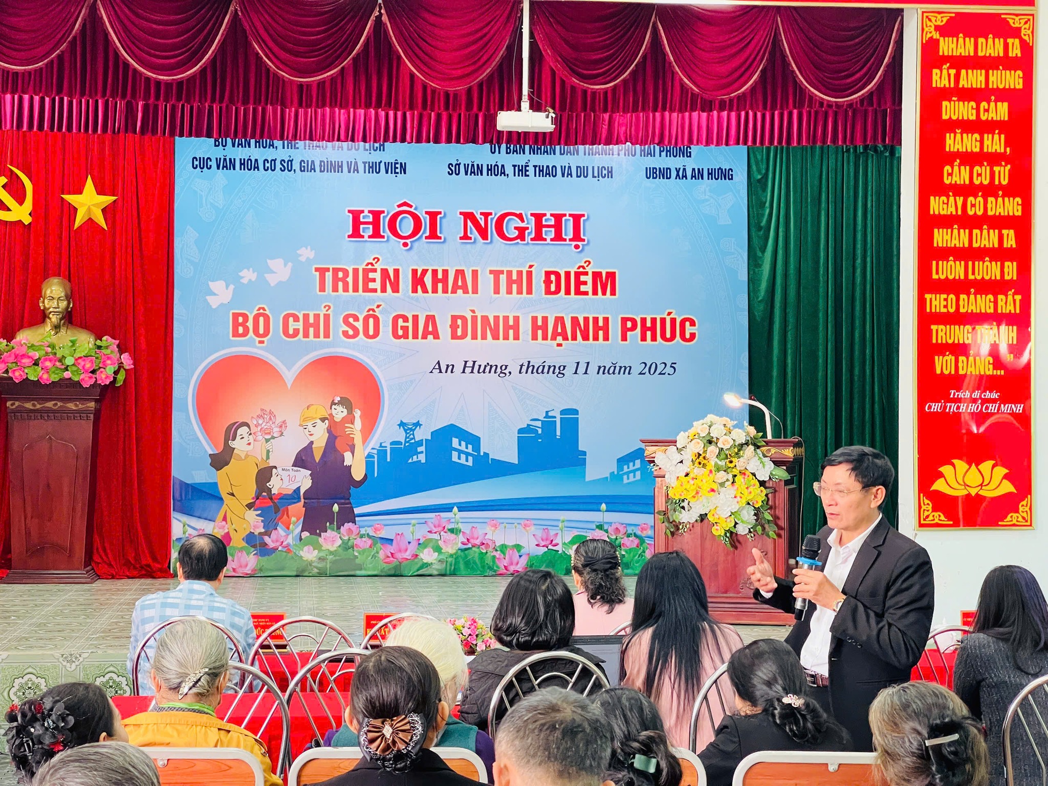 Sáng ngày 28/11/2025 tại Nhà văn hóa Trụ sở Đảng ủy xã An Hưng, Cục Văn hóa cơ sở, Gia đình và Thư viện phối hợp với Sở VHTTDL Hải Phòng và UBND xã An Hưng tổ chức hội nghị triển khai thí điểm Bộ chỉ số gia đình hạnh phúc và Mô hình nhóm gia đình đồng hành cùng trẻ em để thúc đẩy quyền của trẻ em trong gia đình, thực hiện theo Quyết định số 3308/QĐ-BVHTTDL và 3361/QĐ-BVHTTDL năm 2025.