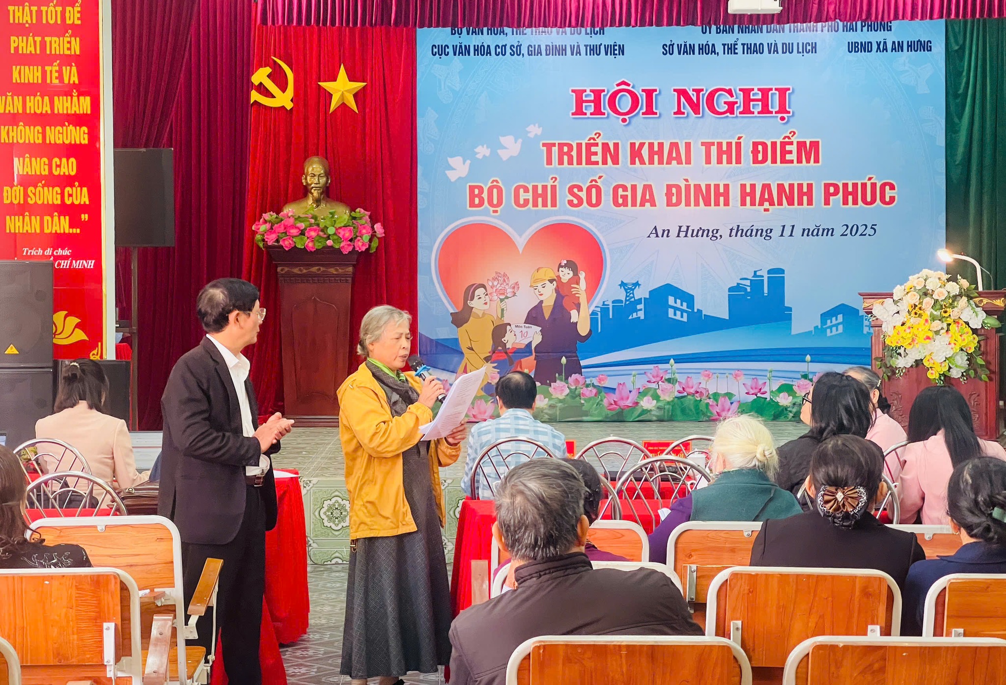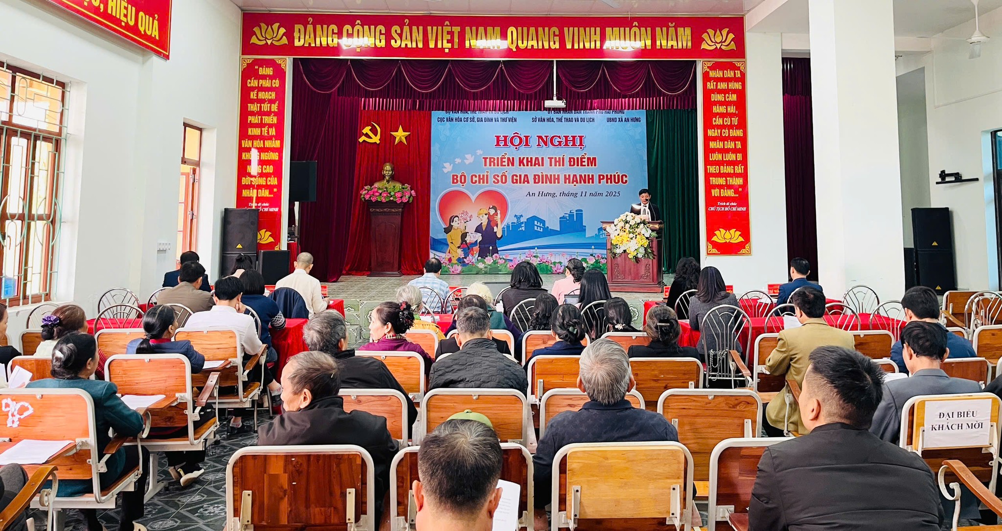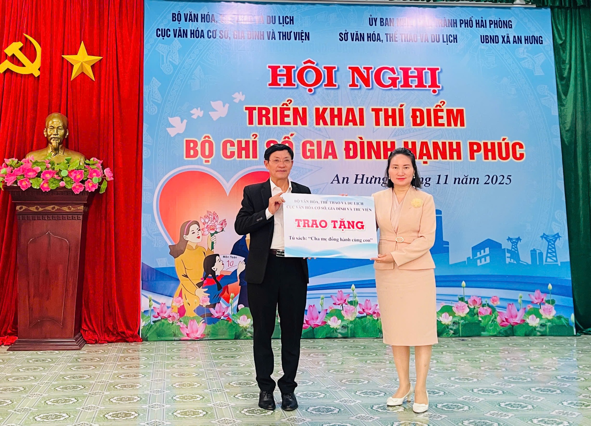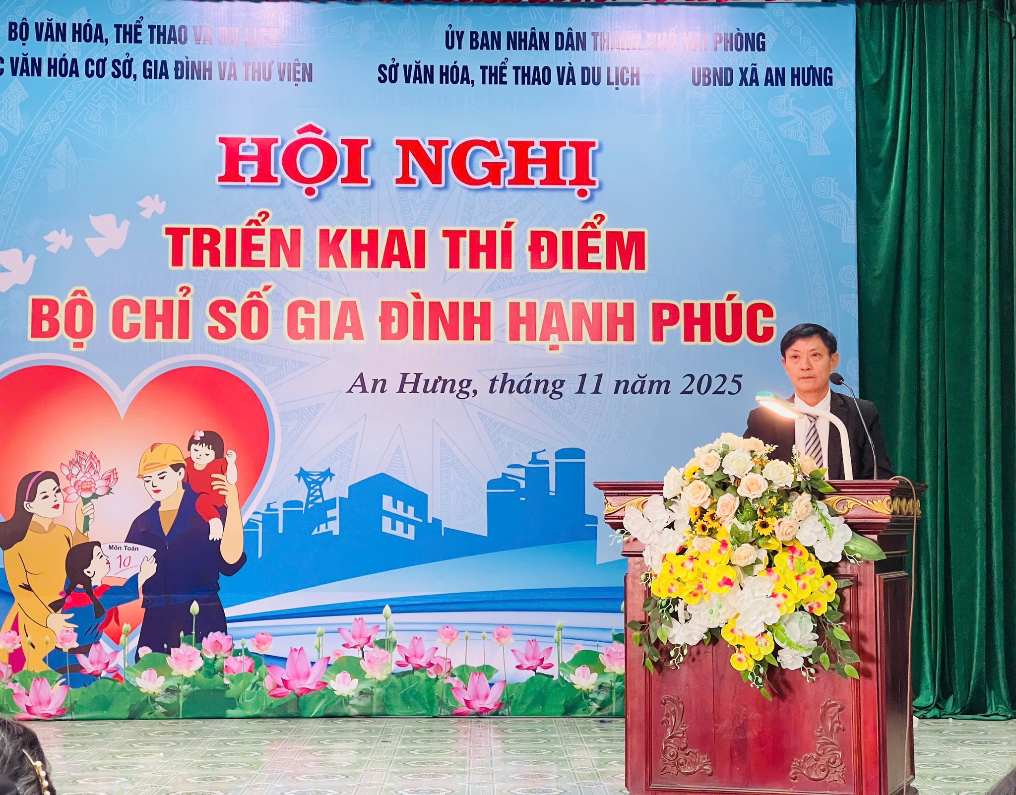 Sáng ngày 28/11/2025 tại Nhà văn hóa Trụ sở Đảng ủy xã An Hưng, Cục Văn hóa cơ sở, Gia đình và Thư viện phối hợp với Sở VHTTDL Hải Phòng và UBND xã An Hưng tổ chức hội nghị triển khai thí điểm Bộ chỉ số gia đình hạnh phúc và Mô hình nhóm gia đình đồng hành cùng trẻ em để thúc đẩy quyền của trẻ em trong gia đình, thực hiện theo Quyết định số 3308/QĐ-BVHTTDL và 3361/QĐ-BVHTTDL năm 2025.