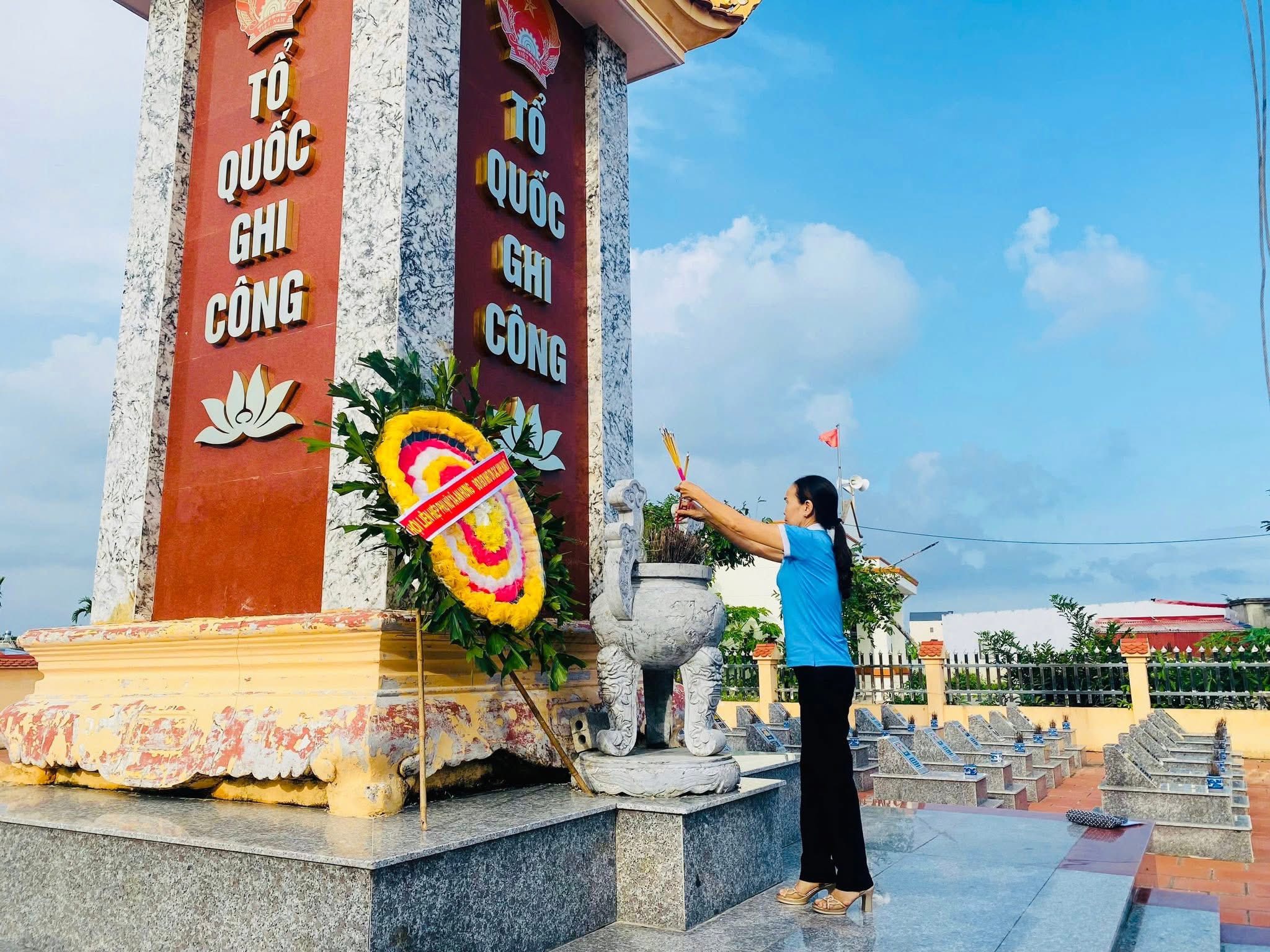Đoàn đại biểu do đồng chí Nguyễn Thị Thu Huyền - Phó Chủ tịch UBMTTQ Việt Nam, Chủ tịch Hội Liên hiệp Phụ nữ xã làm trưởng đoàn, tham dự lễ dâng hương còn có đồng chí Lê Xuân Phú - UVBTV Đảng uỷ, Chủ tịch UBMTTQ Việt Nam xã, cùng các đồng chí trong Ban Chấp hành, chi hội trưởng chi hội PN đã thành kính dâng hoa, thắp hương tưởng niệm, bày tỏ lòng biết ơn sâu sắc đối với các anh hùng liệt sĩ – những người con ưu tú của quê hương đã hy sinh vì độc lập, tự do của Tổ quốc.