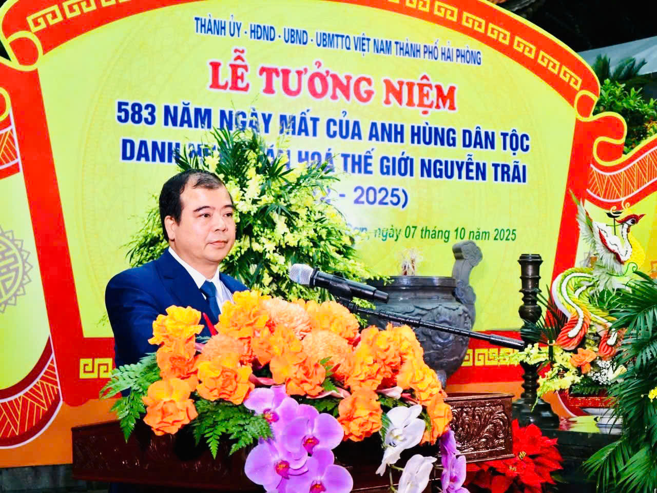 Sáng 7/10 (tức ngày 16 tháng Tám âm lịch) tại sân Đền Nguyễn Trãi, Khu di tích Côn Sơn, Thành ủy, HĐND, UBND, UBMTTQ Việt Nam thành phố Hải Phòng tổ chức Lễ tưởng niệm 583 năm Ngày mất của Anh hùng dân tộc, Danh nhân văn hóa thế giới Nguyễn Trãi (1442-2025).