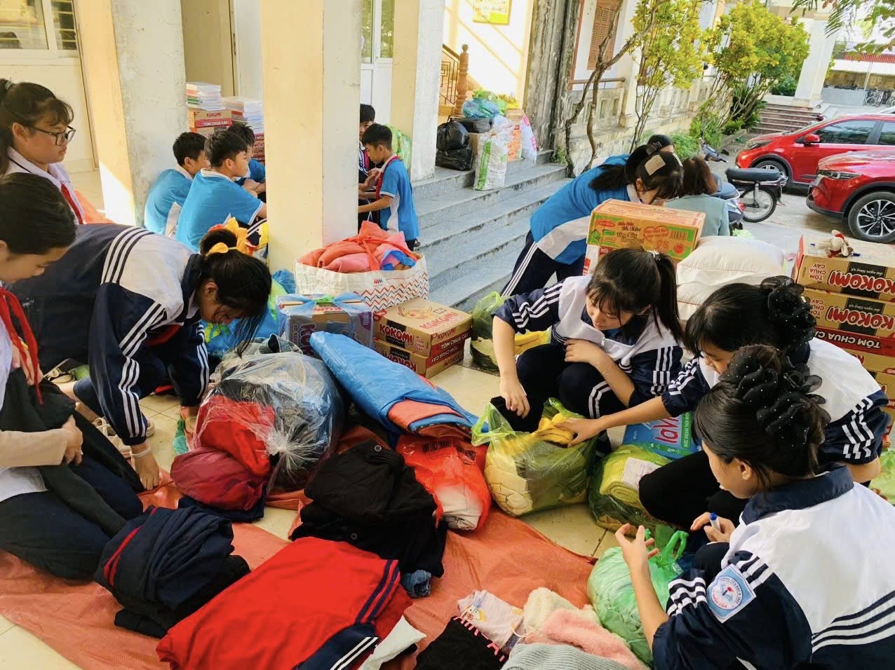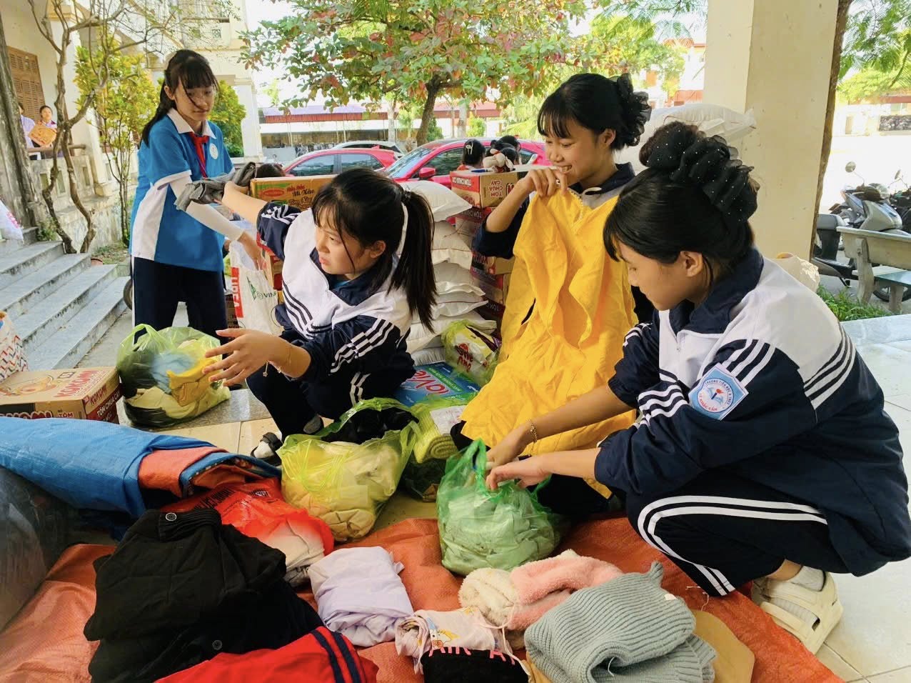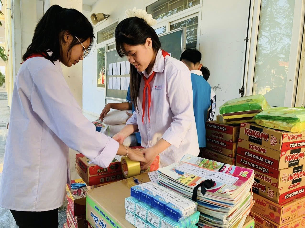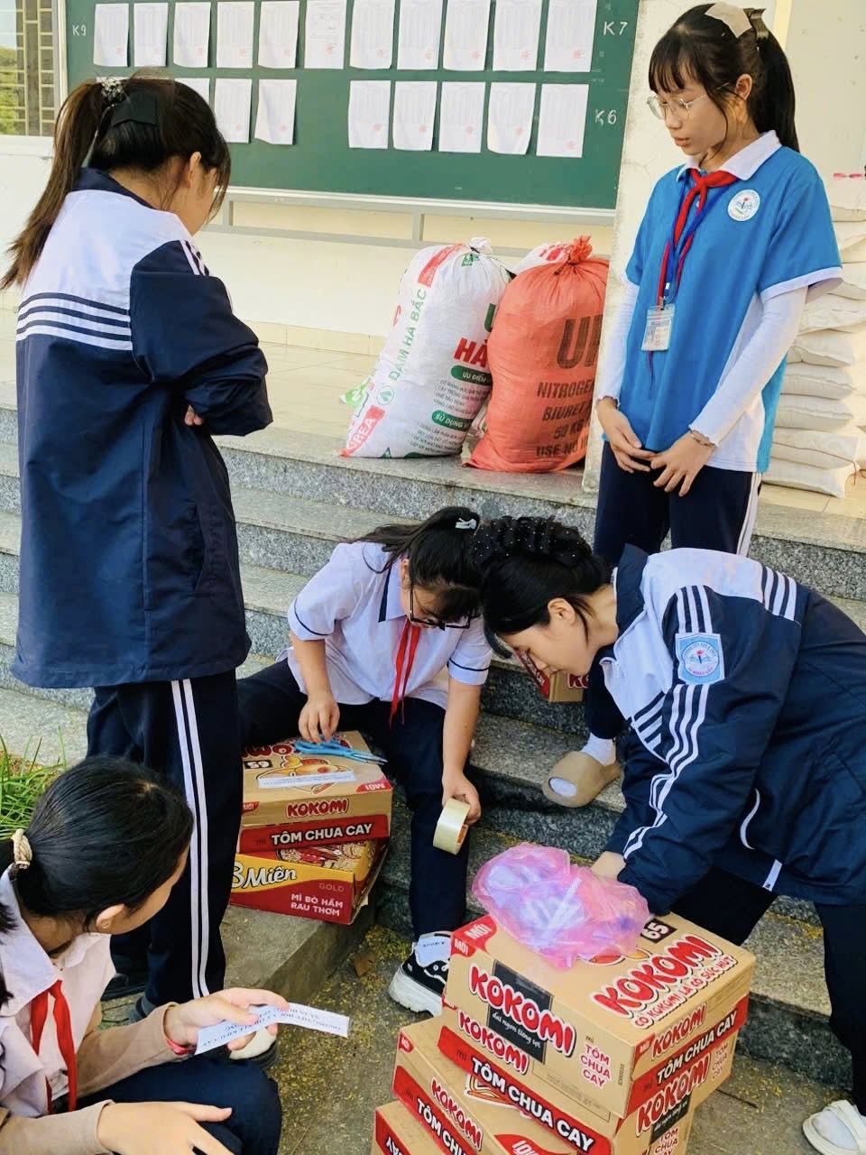 Những nhu yếu phẩm thiết yếu, sách vở, đồ dùng học tập… được các em học sinh và thầy cô phân loại, đóng gói cẩn thận. Từng gói quà nhỏ chứa đựng biết bao tình cảm chân thành – như lời động viên ấm áp, tiếp thêm sức mạnh để bà con vùng lũ vững vàng vượt qua khó khăn, ổn định cuộc sống.