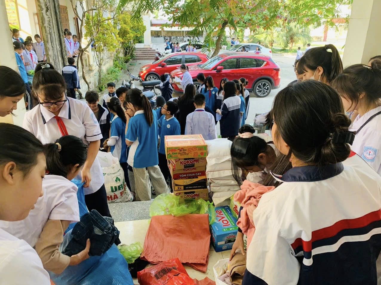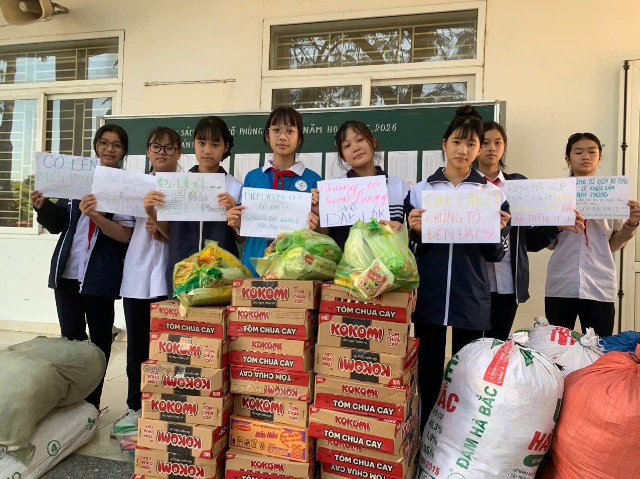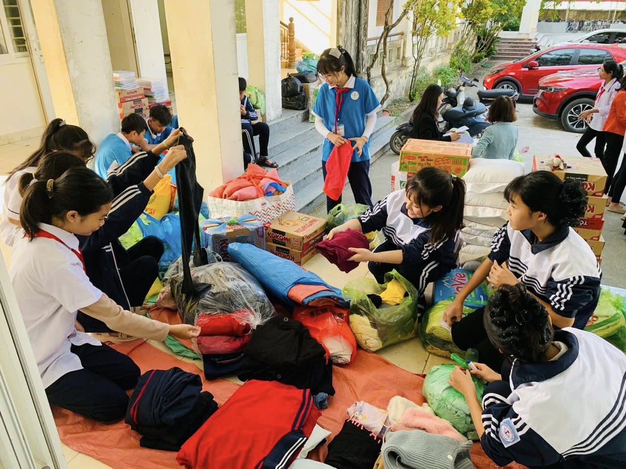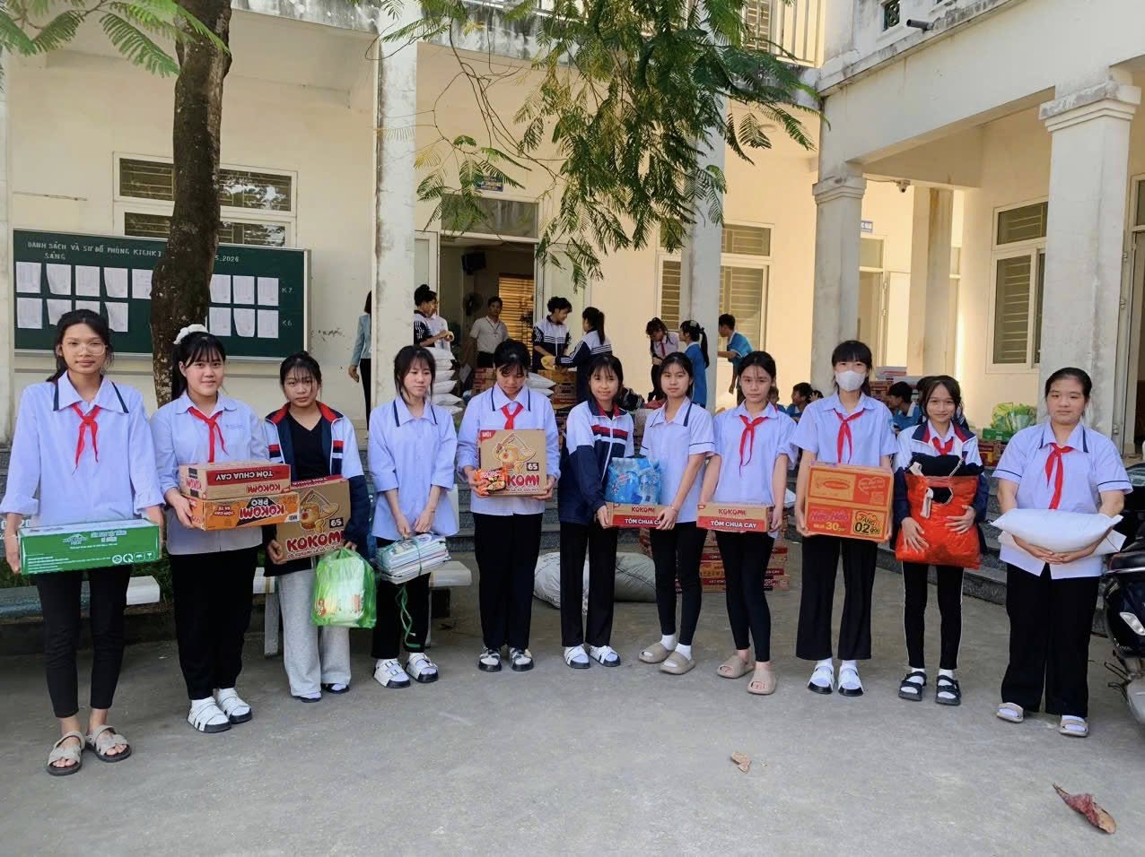 Những nhu yếu phẩm thiết yếu, sách vở, đồ dùng học tập… được các em học sinh và thầy cô phân loại, đóng gói cẩn thận. Từng gói quà nhỏ chứa đựng biết bao tình cảm chân thành – như lời động viên ấm áp, tiếp thêm sức mạnh để bà con vùng lũ vững vàng vượt qua khó khăn, ổn định cuộc sống.