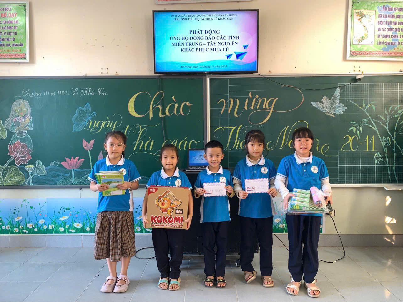 Hưởng ứng lời kêu gọi của MTTQ Việt Nam xã, Đoàn xã và Hội Đồng đội xã An Hưng, Liên đội Trường TH & THCS Lê Khắc Cẩn phát động phong trào quyên góp, chung tay sẻ chia với bà con tỉnh Đắk Lắk đang gồng mình khắc phục hậu quả mưa lũ. Đây là hoạt động mang đậm tinh thần nhân ái, thể hiện tấm lòng hướng về đồng bào nơi gian khó.