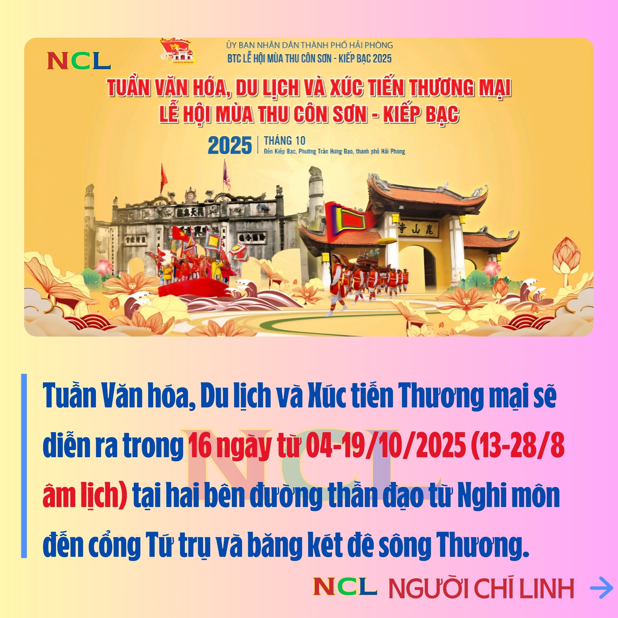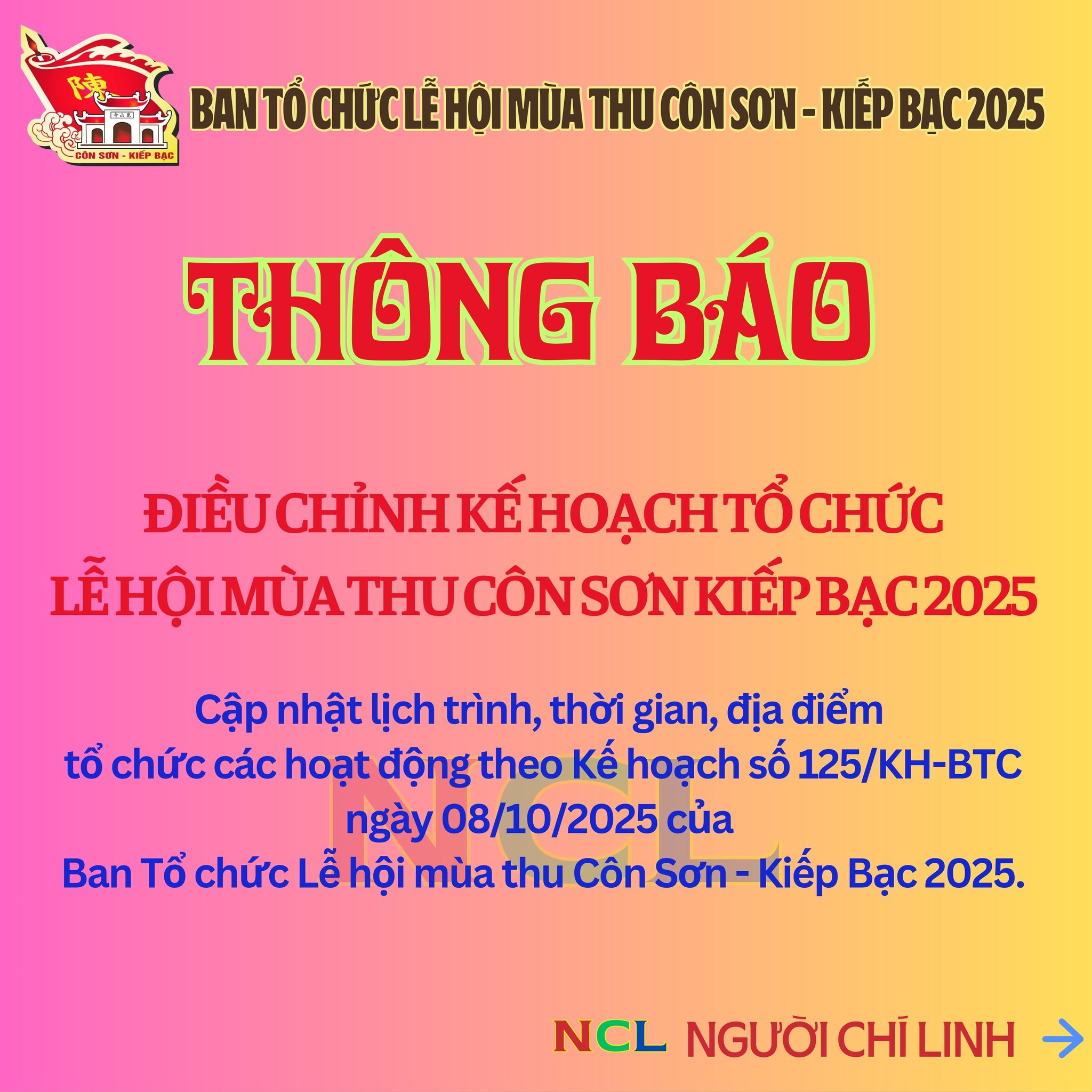 THÔNG BÁO ĐIỀU CHỈNH THỜI GIAN, ĐỊA ĐIỂM TỔ CHỨC MỘT SỐ HOẠT ĐỘNG TẠI LỄ HỘI MÙA THU CÔN SƠN - KIẾP BẠC NĂM 2025