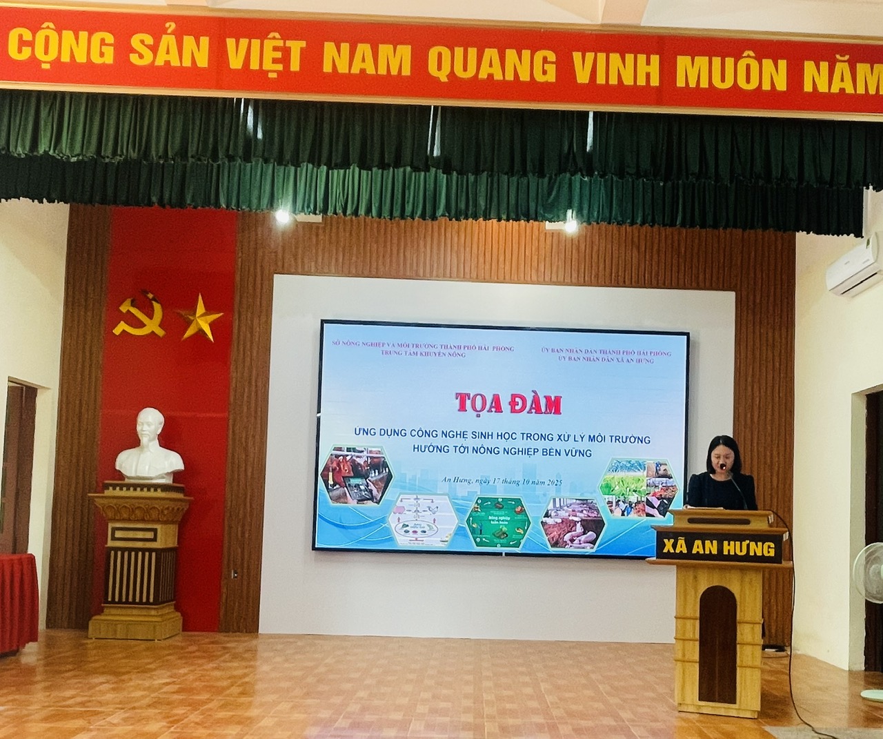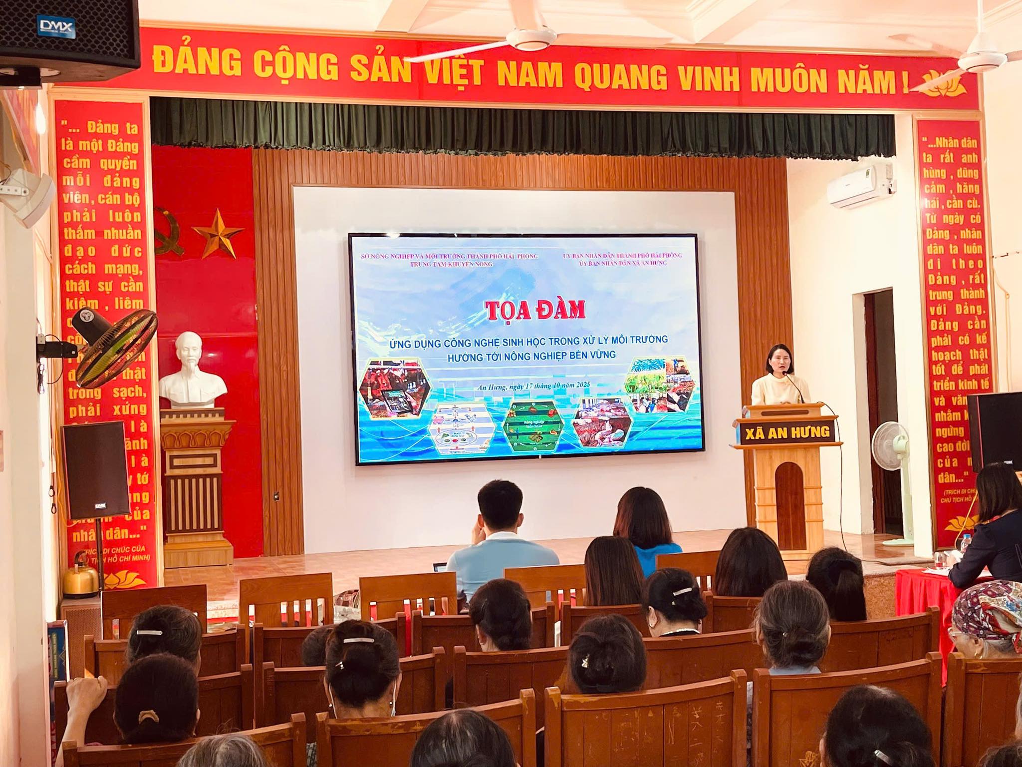 Thực hiện Kế hoạch số 21/KH-PĐTTT ngày 19/5/2025 của Trung tâm Khuyến nông Hải Phòng về triển khai xây dựng chương trình thông tin tuyên truyền năm 2025. Sáng ngày 17 tháng 10 năm 2025 tại hội trường UBND xã An Hưng, Trung tâm Khuyến nông Hải Phòng phối hợp với UBND xã tổ chức tọa đàm với chủ đề “Ứng dụng công nghệ sinh học trong xử lý môi trường – Hướng tới nông nghiệp bền vững”.