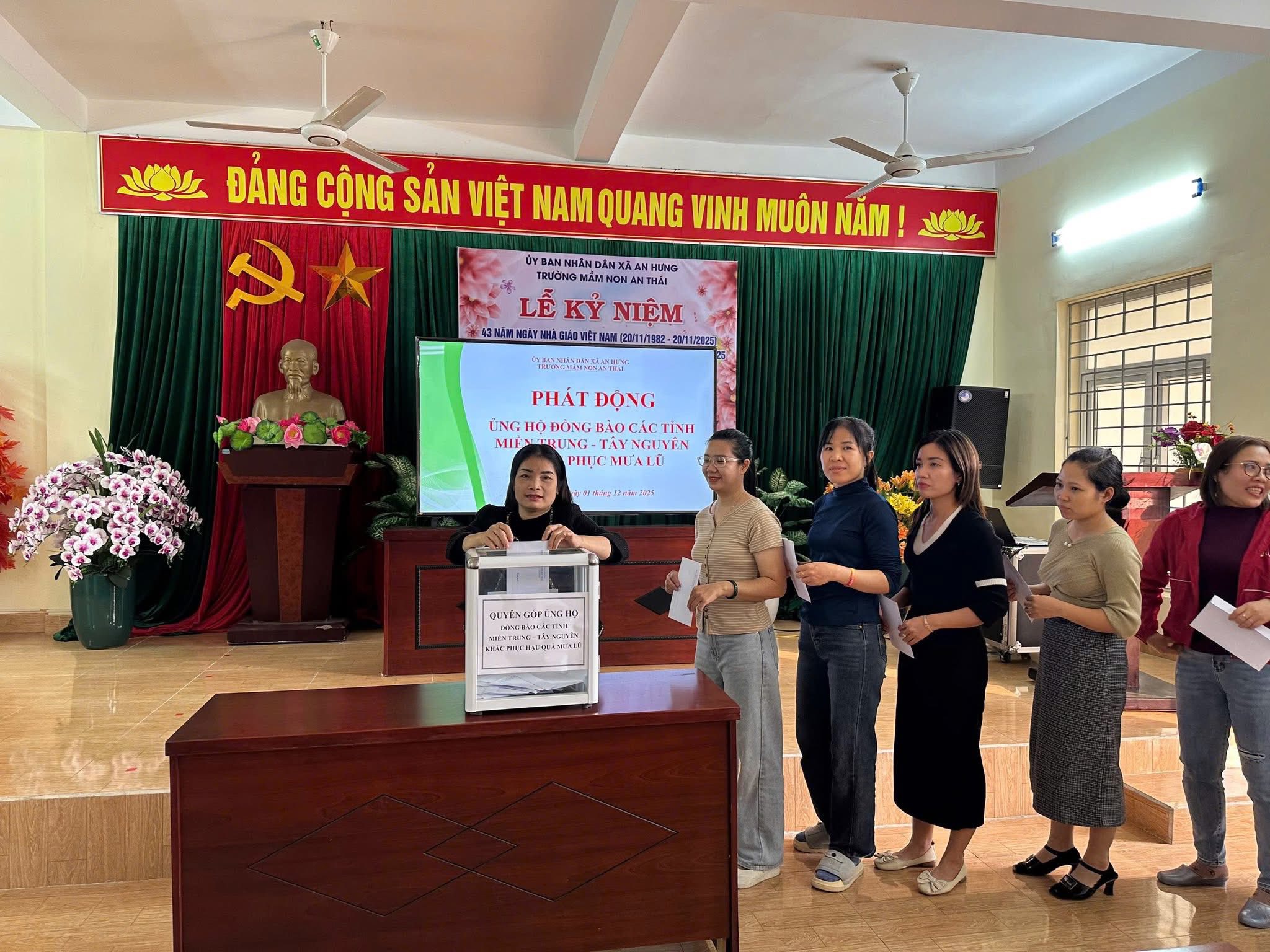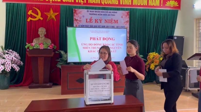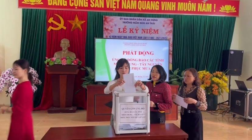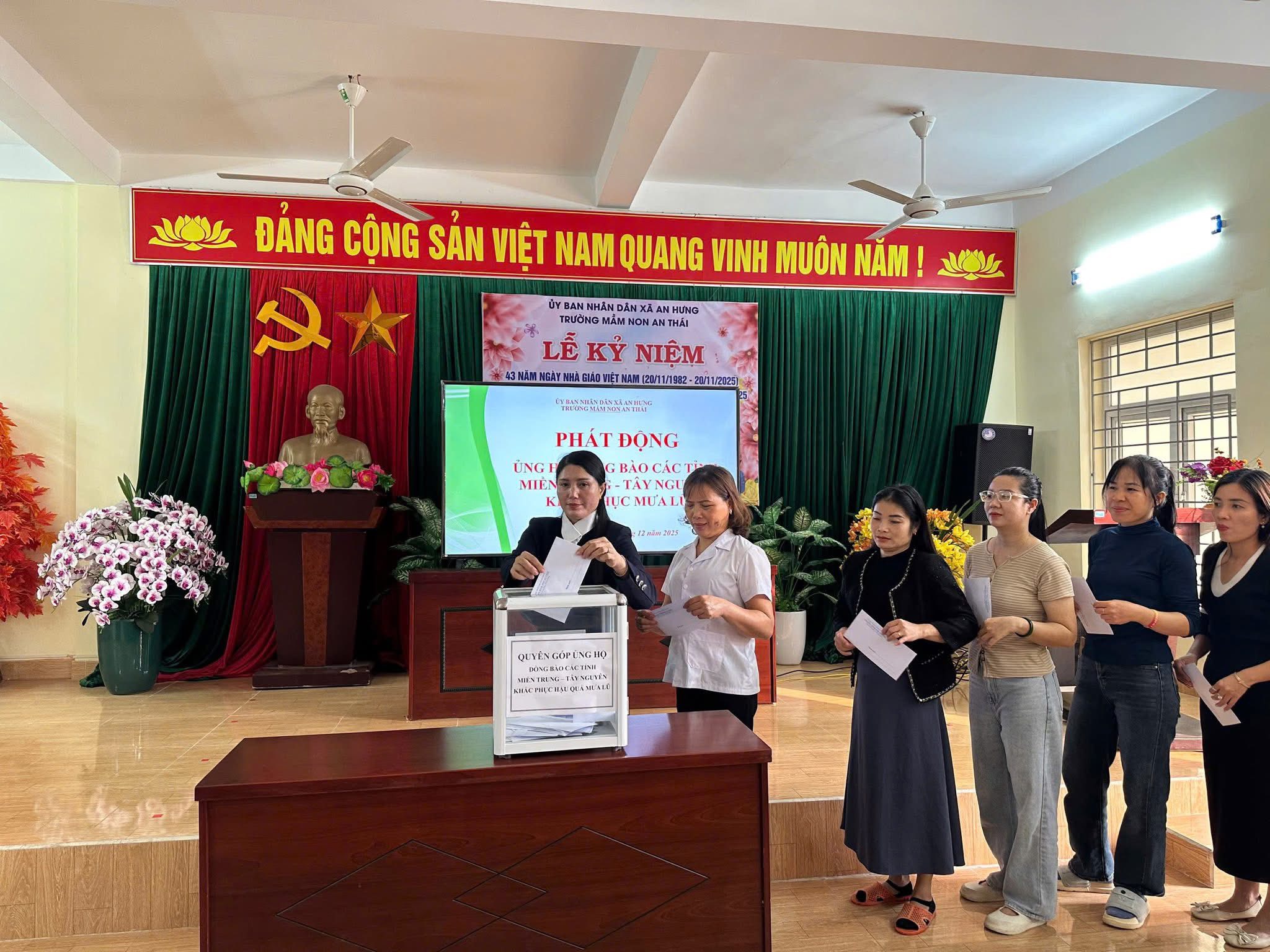 Hưởng ứng lời kêu gọi của Ủy ban MTTQ Việt Nam xã An Hưng về việc hỗ trợ đồng bào Miền Trung – Tây Nguyên khắc phục hậu quả sau mưa lũ, sáng ngày 01/12/2025, Trường mầm non An Thái tổ chức Chương trình phát động phong trào quyên góp ủng hộ trong toàn thể cán bộ, giáo viên, nhân viên và học sinh nhà trường.