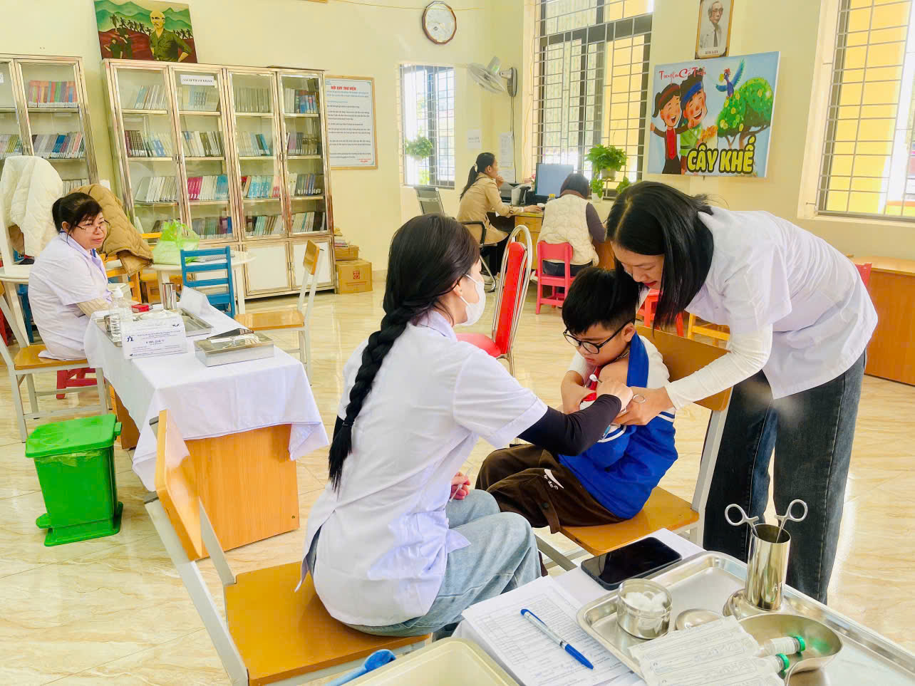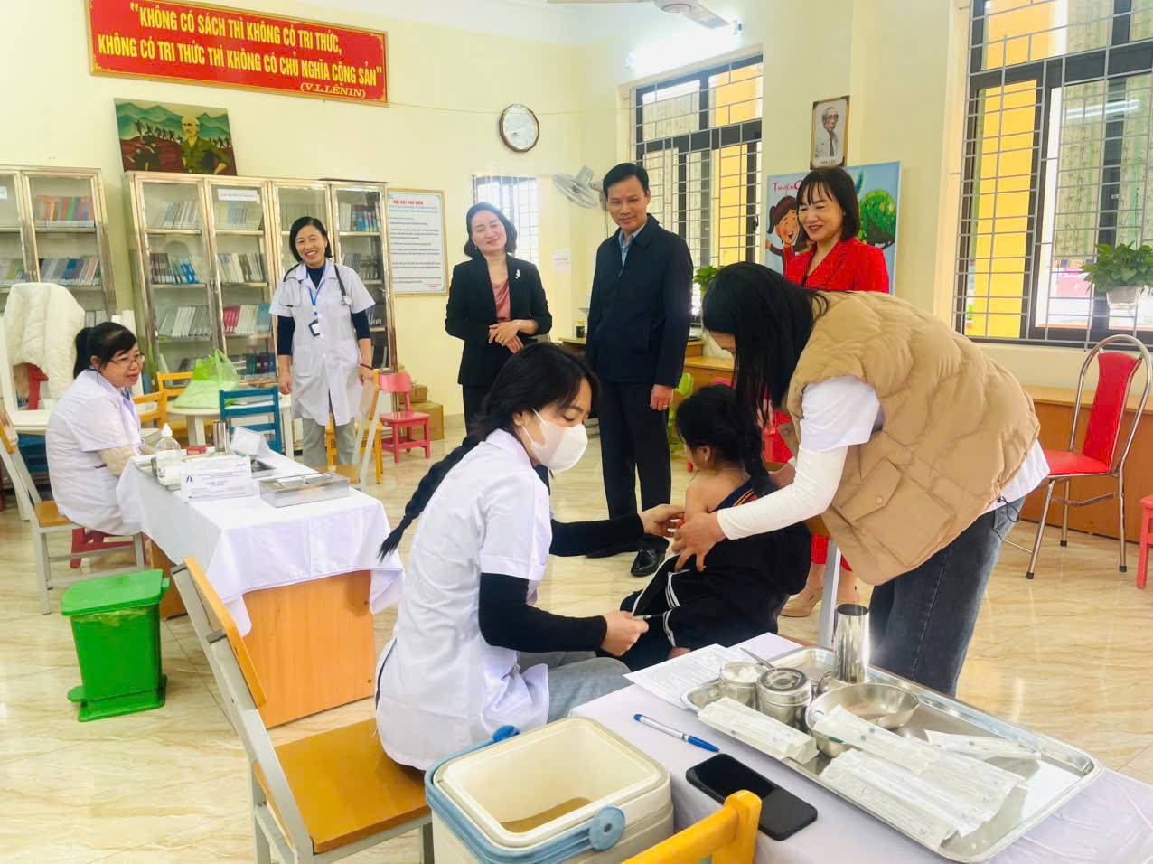 Ghi nhận trong buổi sáng nay cho thấy, công tác tiêm chủng tại các điểm được triển khai an toàn, nghiêm túc và tuân thủ đầy đủ quy trình chuyên môn. Song song với việc tiêm vắc xin, lực lượng y tế xã đã theo dõi sát sao phản ứng sau tiêm của trẻ. Các em học sinh được theo dõi tối thiểu 30 phút tại điểm tiêm và tiếp tục được theo dõi tại trường hoặc tại gia đình trong ít nhất 24 giờ tiếp theo nhằm đảm bảo an toàn cao nhất.
